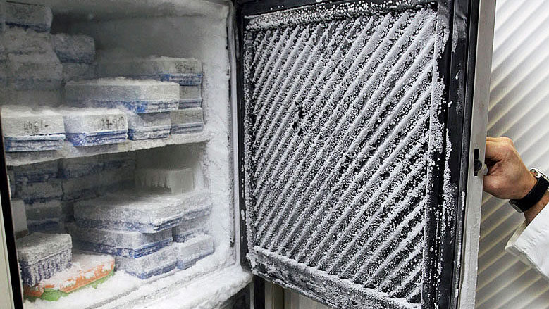 Холодильник в лаборатории, где хранятся образцы крови, ожидающие очереди на типирование. Фото: соцсети РДКМ.