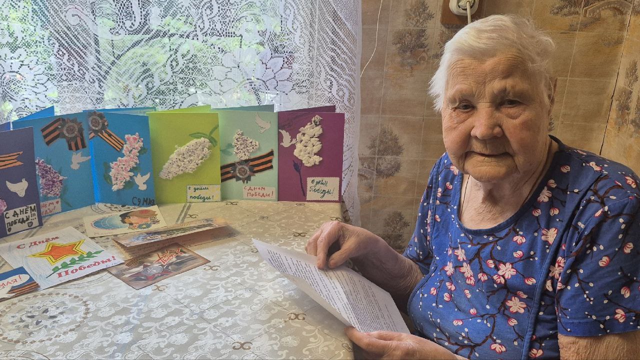 Ветеран ВОВ Анастасия Андреевна Душечкина благодарит своих внуков по переписке. Фото: соцсети благотворительного фонда «Доброделы»