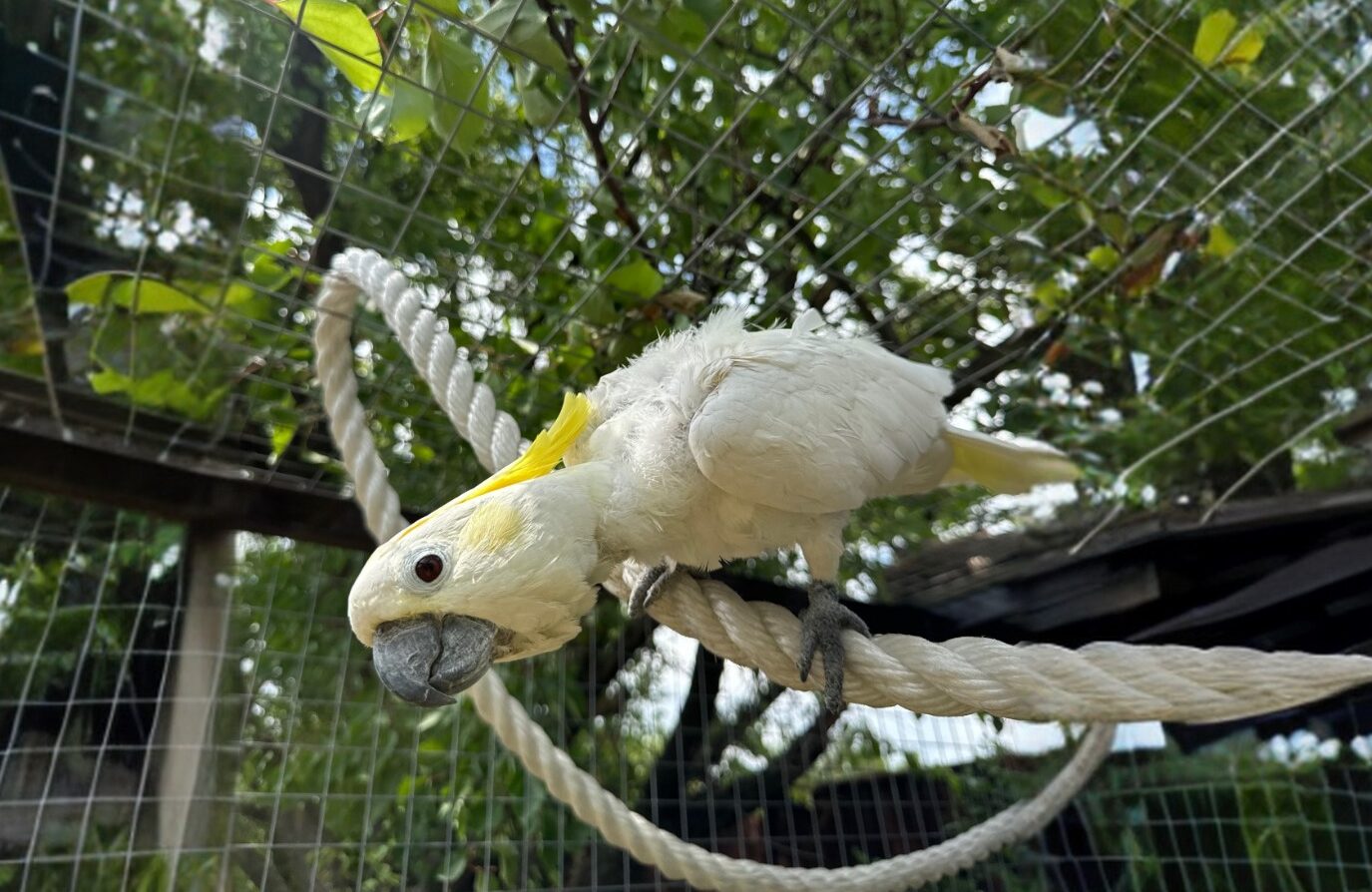 «Какаду Петруша – единственная, кого мне удалось приучить летать без шлейки и возвращаться. Пока позволяет погода, мы выходим на полчаса, чтобы у неё были физические нагрузки и ещё лучше работала дыхательная система, – говорит женщина, которая спасает попугаев. – С теми, кто не привык возвращаться по команде, я занимаюсь в вольере – за вкусняшку они летают на небольшие расстояния».
