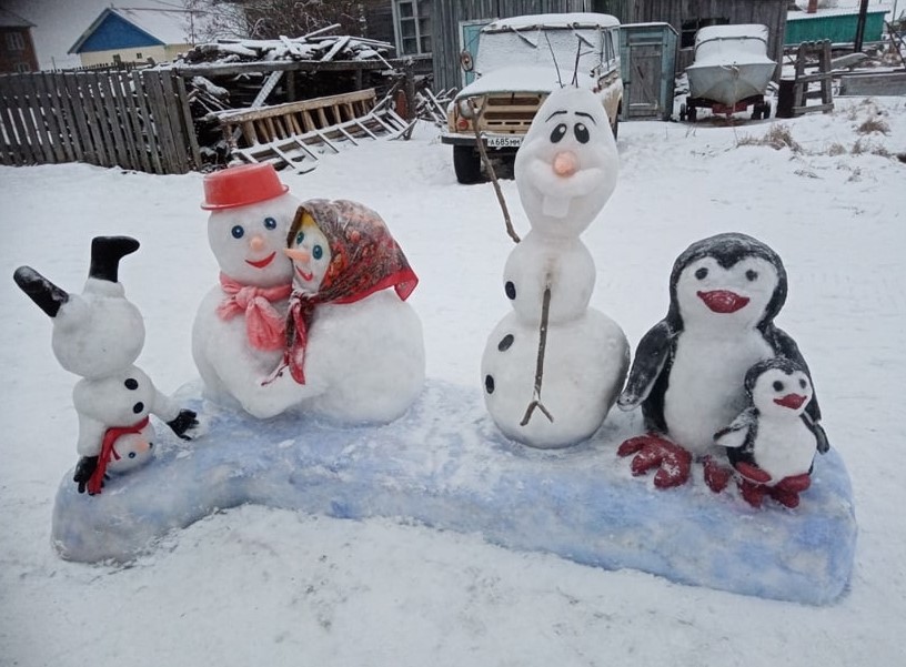 «Уже шестой год мы с супругом делаем снежные фигуры. Были и олени, и шаманы, и танцующие бабушка с дедушкой. Леплю из сырого снега, поливаю водой. До идеала довожу уже инструментами. Недавно купили электрическую пилу, с ней дело идёт гораздо быстрее», – делится Наталья.