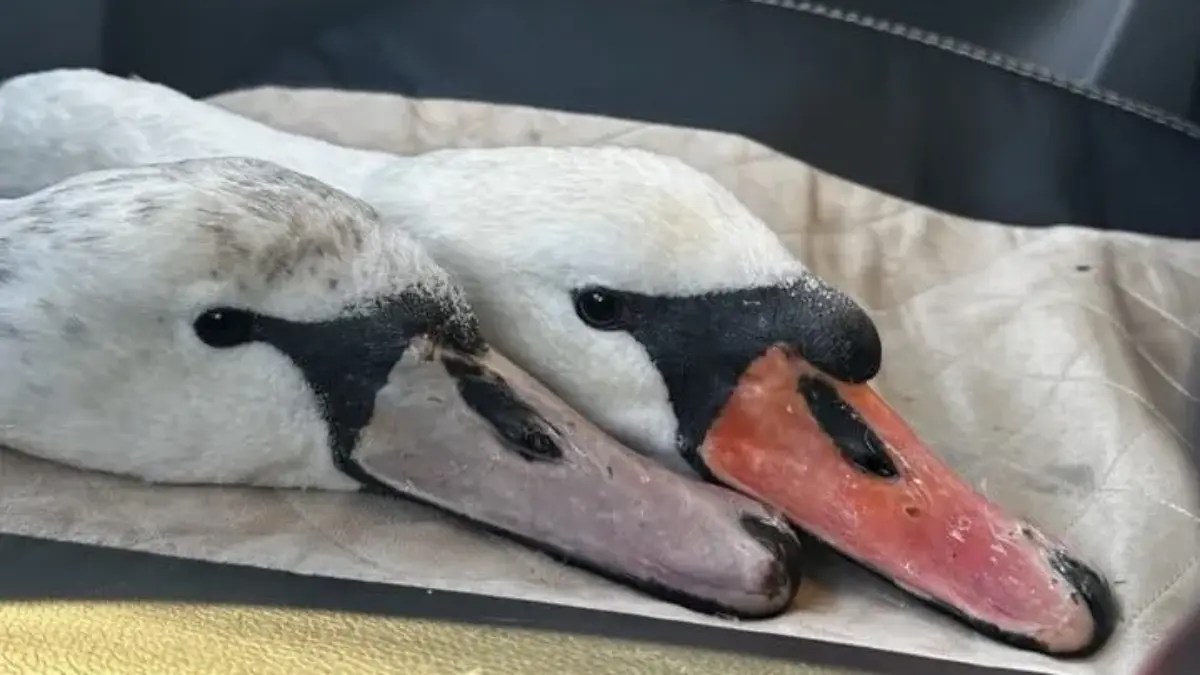 Обоих животных казахстанец взвалил на плечи и отнёс в машину. Он спас лебедей в момент, когда последние силы уже покидали пару неразлучников.