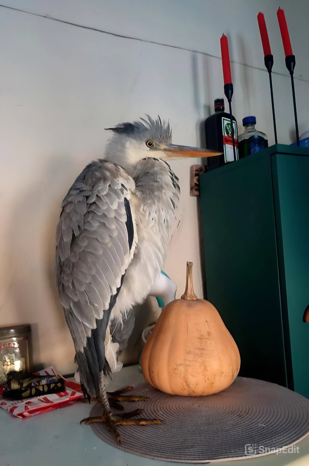 «Пыталась охотиться на кошек»: женщина спасла вмерзшую в лед цаплю и поселила на холодильнике