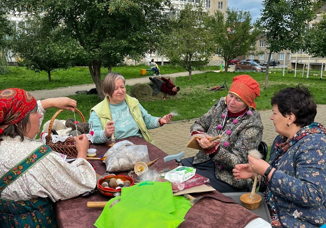 Среди них и Эльвира Николаевна Таранова. Женщина участвует в публичных прядениях уже третий раз. С собой всегда берёт запасные инструменты. На случай если кто-то из прохожих захочет попробовать.