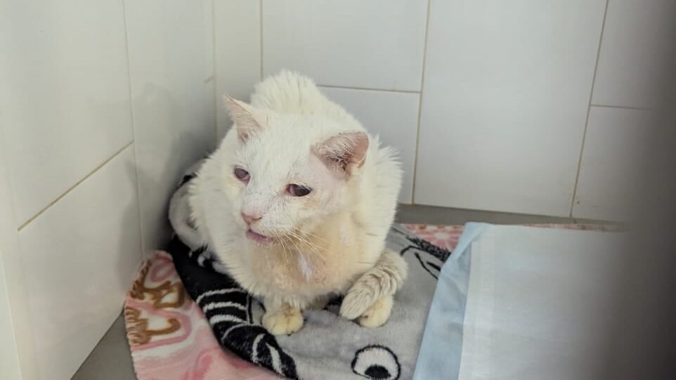 Первого мая белоснежного котика на обочине дороги нашли волонтёры. Они поняли, что он жив, лишь по слабому дыханию. И сразу повезли к врачам клиники «Айболит».