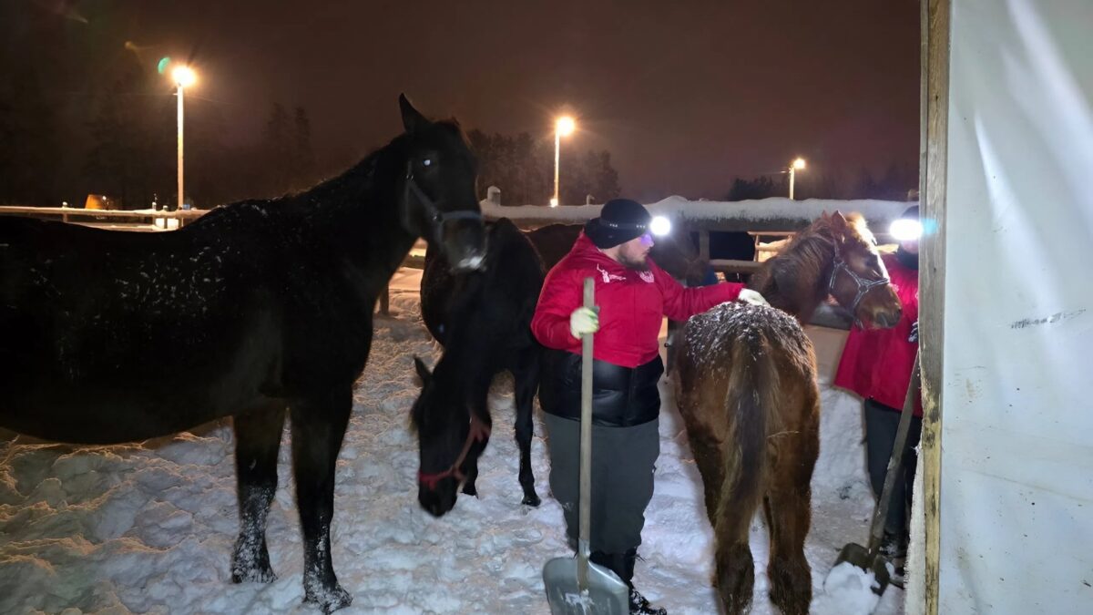Волонтёры помогли расчистить дорожки к домикам с лошадьми, откопали рулоны сена и пообщались с животными. Вместе с добровольцами к работам присоединились активисты из Кривандинской школы: ребята откликнулись, потому что понимали, сколько проблем снегопады добавили и людям, и питомцам.