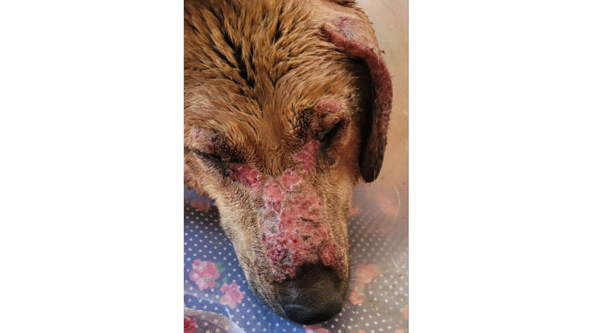 Но две недели назад нашлись те, кому животное всё же помешало. 17 июля обитатели близлежащих домов нашли Раю с ужасными ранами на морде и ушах. Она практически не открывала глаза и страшно скулила. Люди сразу поняли, что животное облили кипятком, и связались с волонтёрами, чтобы те спасли собаку.