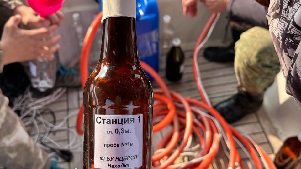 Команда специалистов компании «ЭКОСФЕРА» берут пробы морской воды для анализа на загрязнённость по санитарно-химическим, микробиологическим и паразитологическим показателям. Фото: соцсети «Группа компаний "ЭКОСФЕРА"».