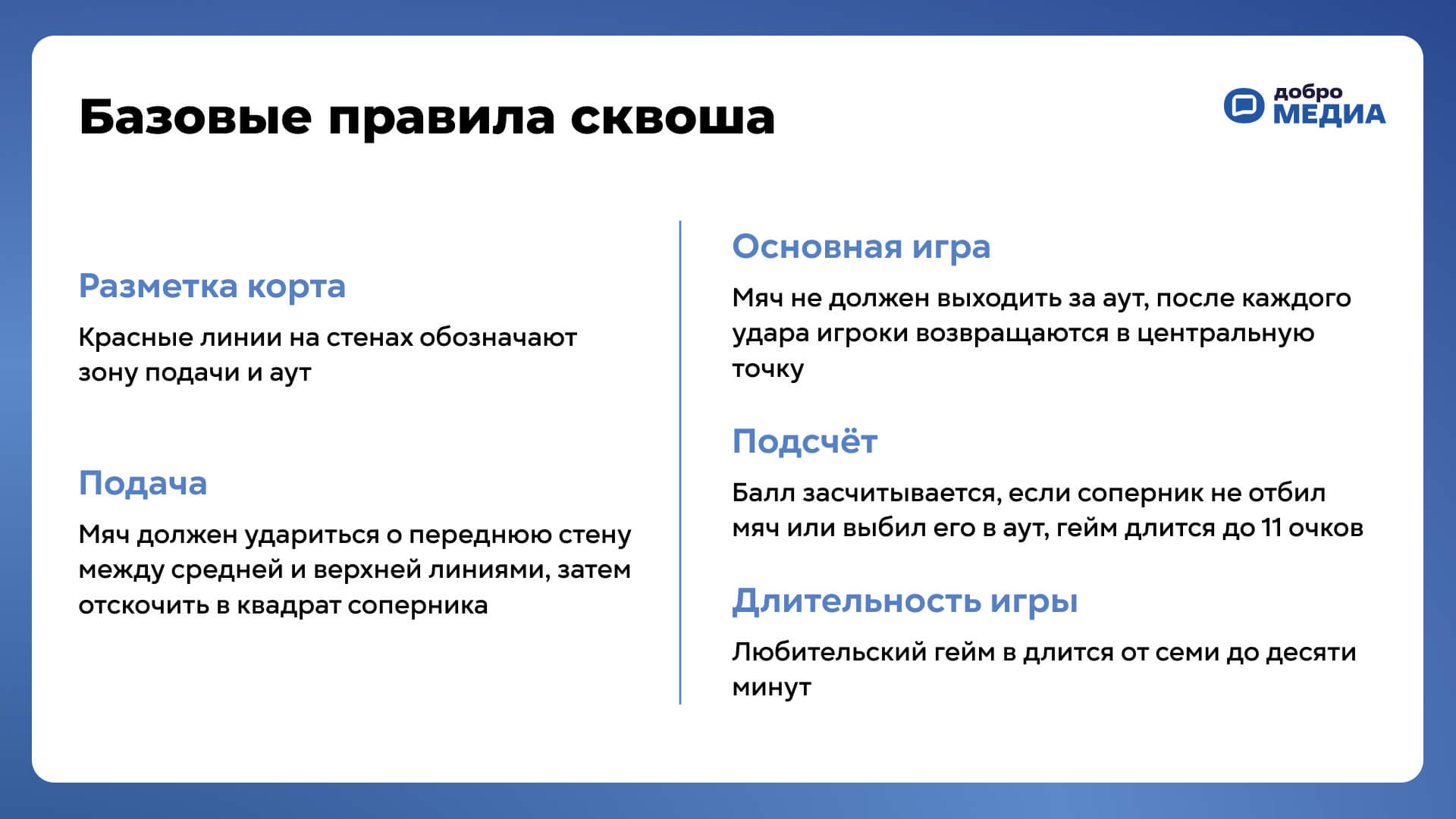 Игры с мячом и ракеткой в последнее время набирают популярность. Среди них: теннис – большой и настольный, а ещё падел, пиклбол. А что такое сквош и как в него играть? Рассказываем в этом материале.