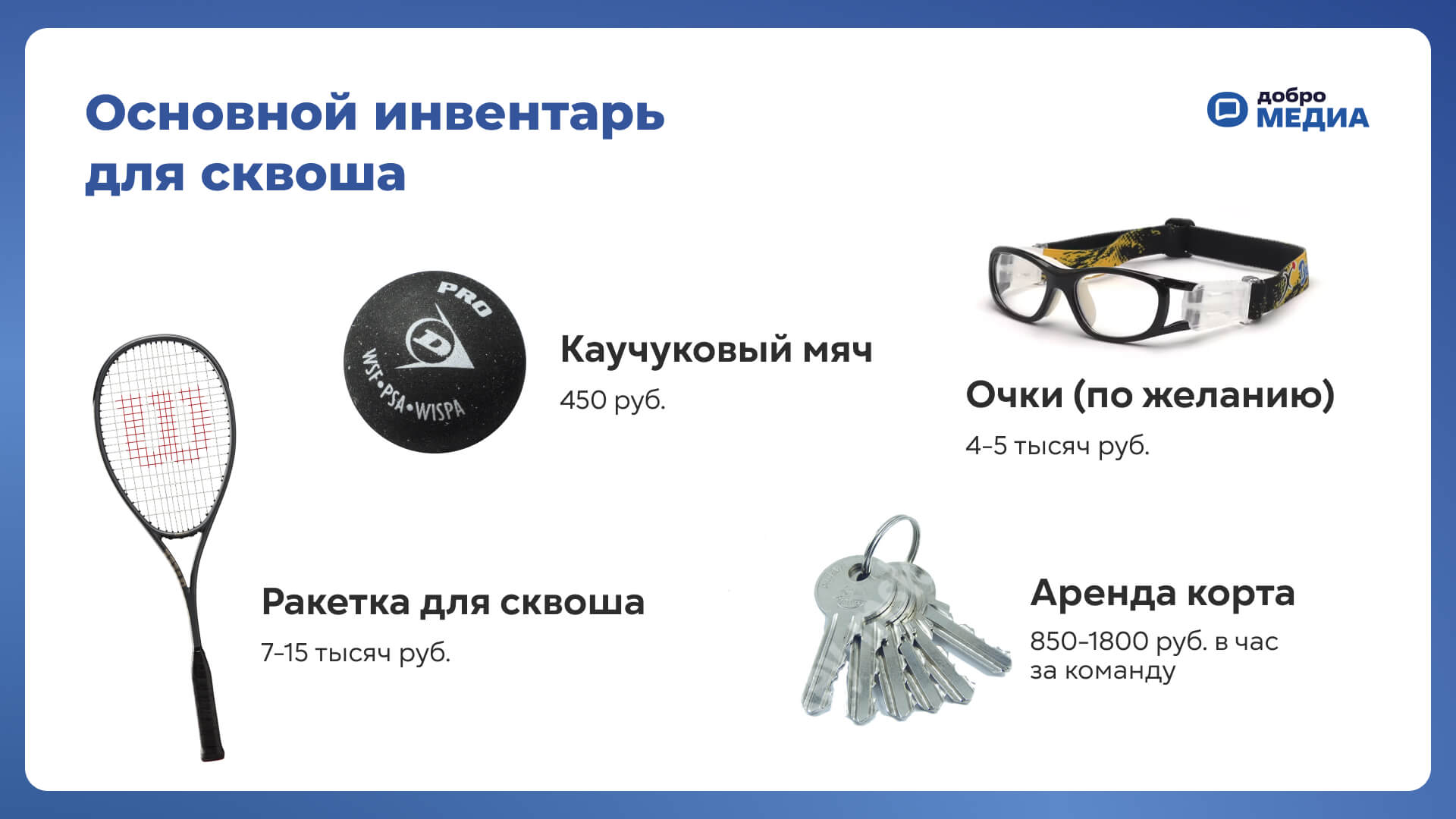 Два игрока, пара ракеток и мячик – на первый взгляд сквош действительно похож на теннис. Но вместо сетки здесь стена. А чтобы заняться этим видом спорта, понадобится специальный корт.