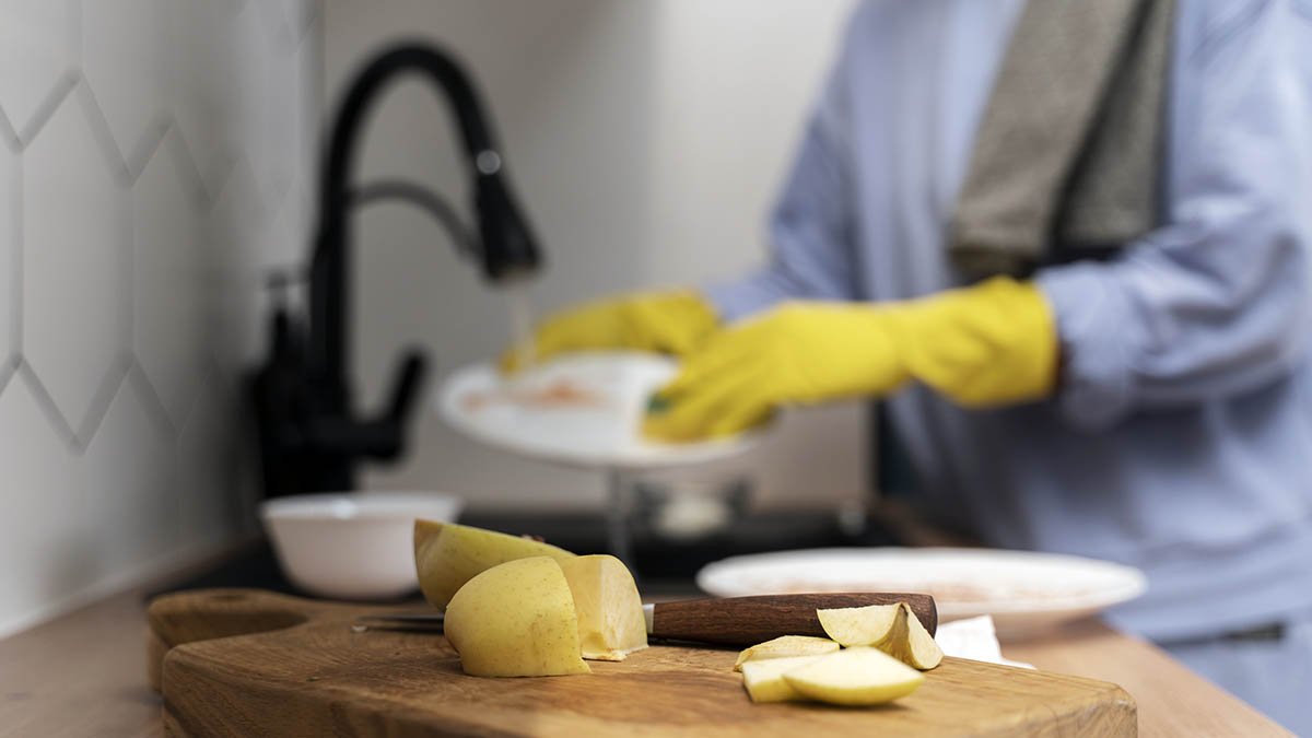 Совет. Лучше использовать разные губки для посуды и для протирания кухонных поверхностей, чтобы уменьшить риск переноса бактерий с одной зоны на другую.