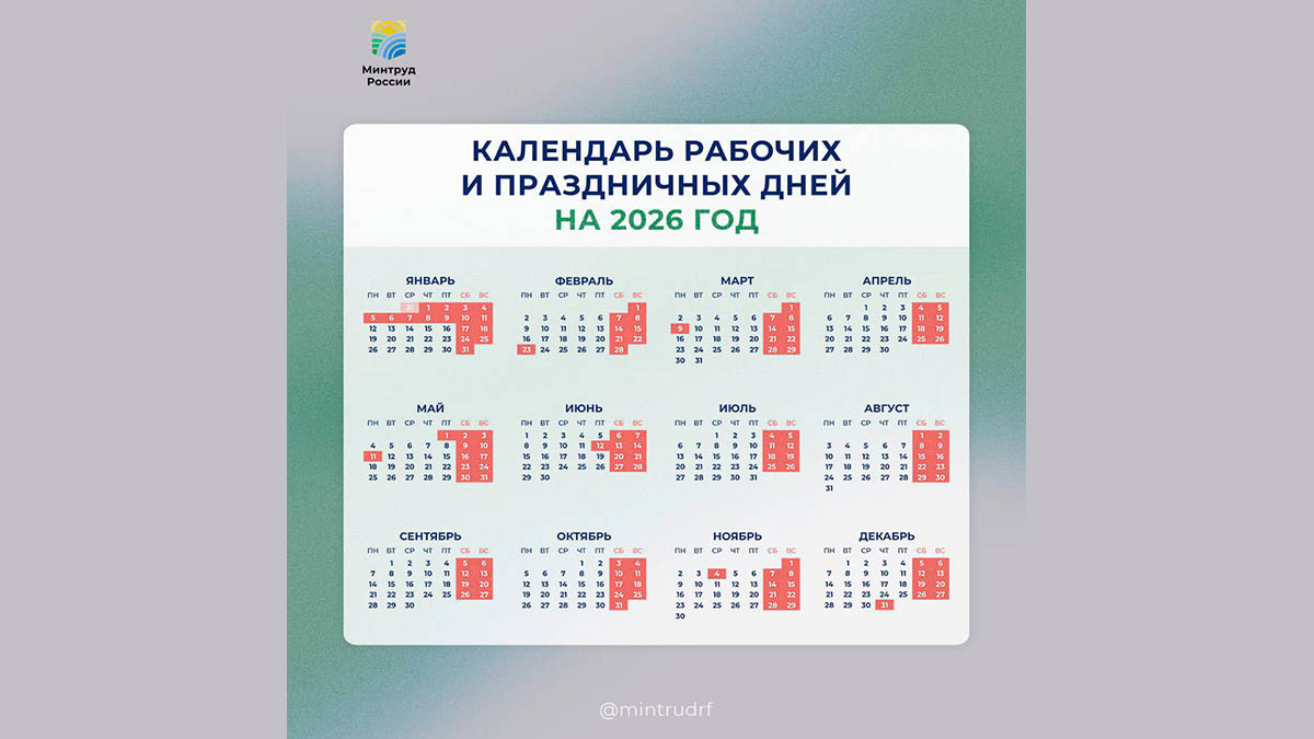 Проект календаря праздничных дней на 2026 год предложили в Министерстве труда и социальной защиты. Когда россиянам дадут длинные выходные – читайте на Добро.Медиа.