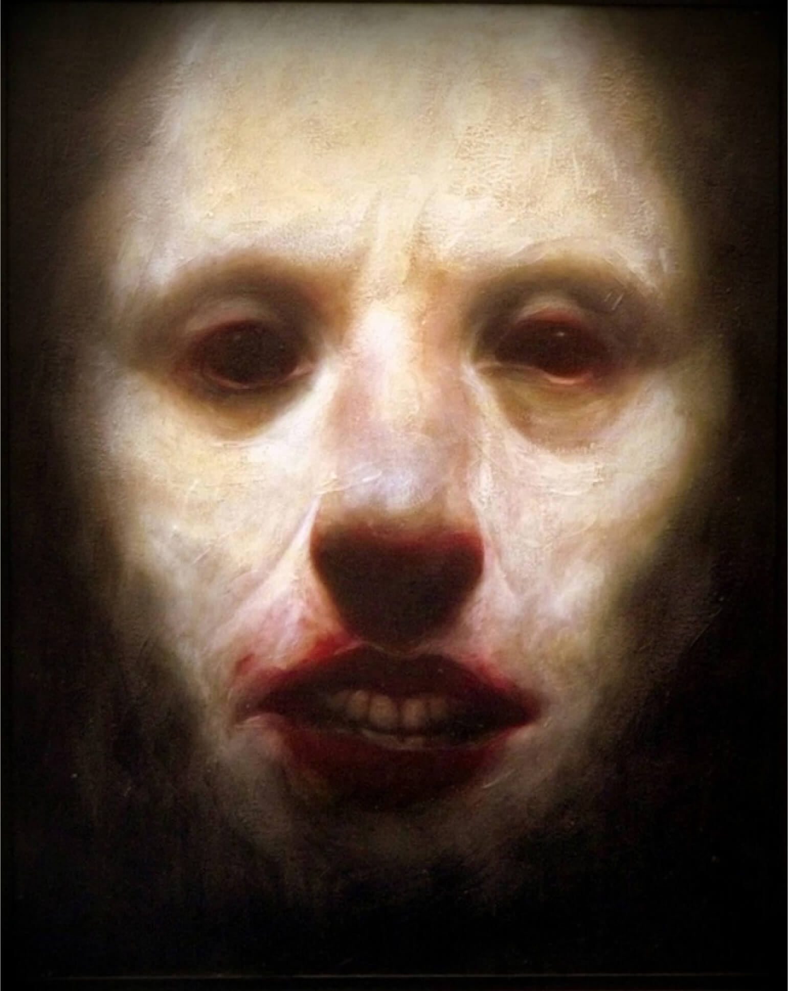 Шотландский художник Кен Карри изобразил искажённое, будто мёртвое лицо крупным планом.
