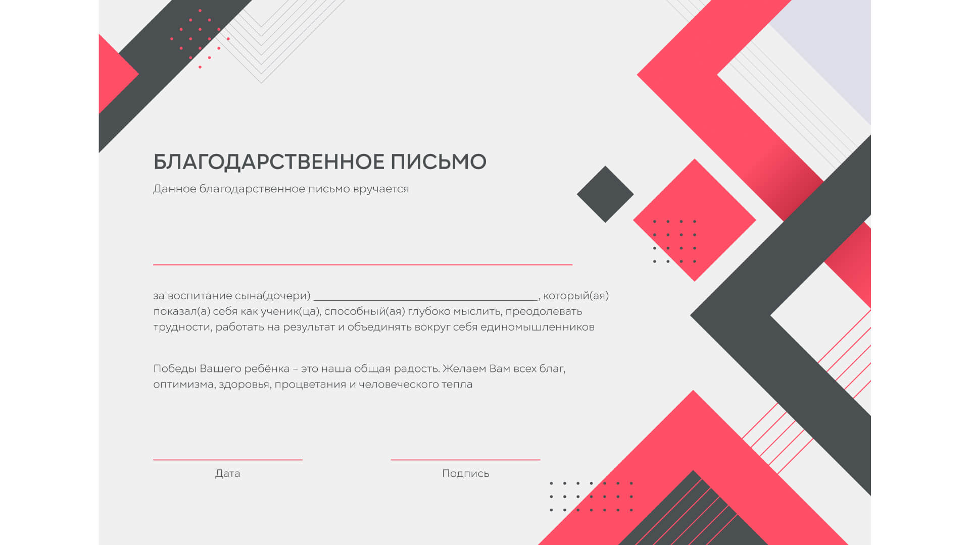 Хотите поддержать ребёнка или поблагодарить взрослого за помощь и вклад в реализацию проектов? Воспользуйтесь бюджетным вариантом – дипломом. Детям он пополнит портфолио, а взрослым – будет напоминать о важности воспитания и ценности их вклада в умы подрастающего поколения – будущего России.