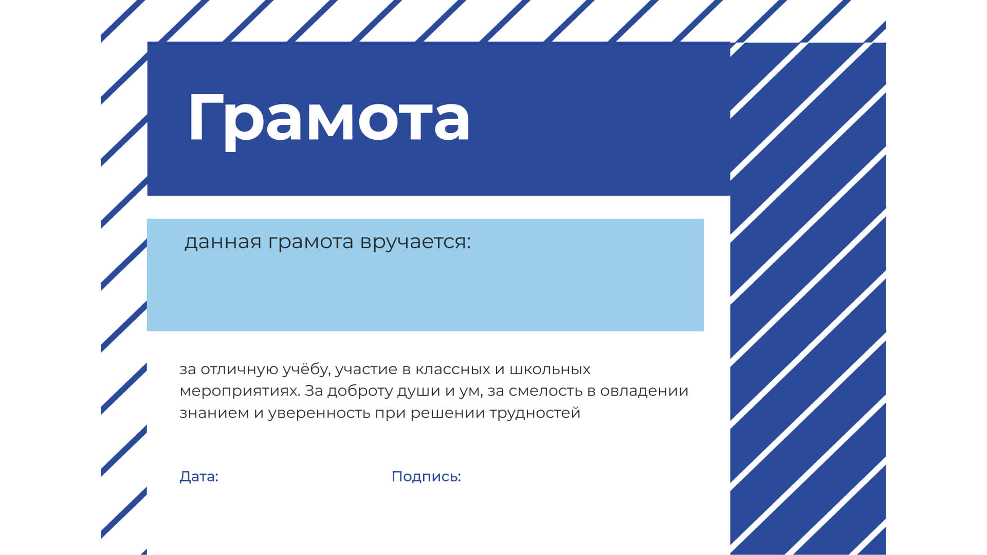 Подойдут педагогам, которые хотят поощрить стремление ребят учиться лучше. Также предлагаем версию грамоты для активистов классных и общешкольных мероприятий и активностей. Текст составлен так, чтобы вы могли использовать материалы и для отличников, и для троечников.