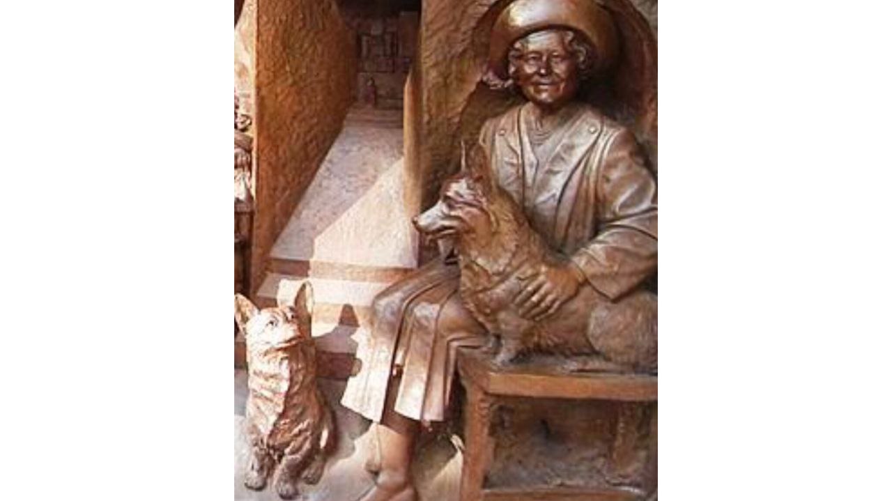 Бронзовый памятник королеве и корги. Фото: wikimedia / Charlie Dave / CC BY-SA 3.0