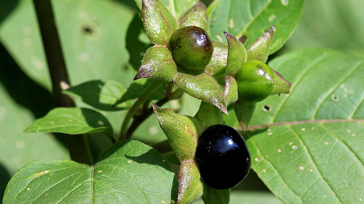Это высокий многолетник, известный также как красавка или «сонная дурь». Его плоды – тёмные ягоды, порой жёлтые, наполненные множеством семян. При попадании ягод в организм уже через 20 минут проявляются такие симптомы, как сухость и жжение во рту, затруднённое глотание и дыхание, учащённое сердцебиение, рвота и расстройство стула.