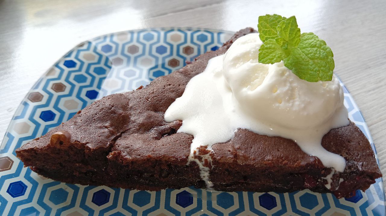 Вишнёвый пирог можно украсить шариком сливочного мороженого. Его можно купить в магазине или приготовить самостоятельно. Для этого вам понадобится всего два ингредиента.