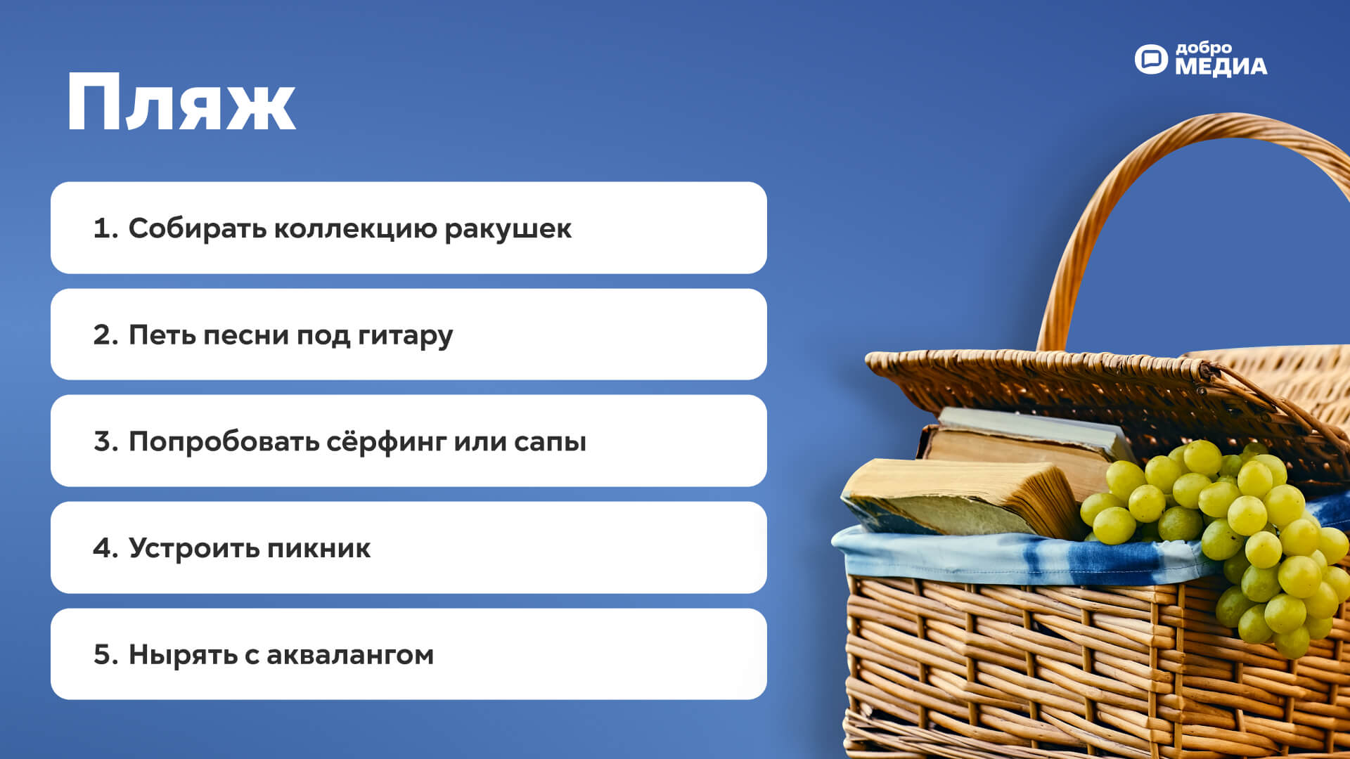 Лето уже наступило, а вы не придумали, чем заняться? Мы подготовили топ-20 идей. Список подойдёт как для спортсменов и путешественников, так и для творческих людей и любителей шумных посиделок.