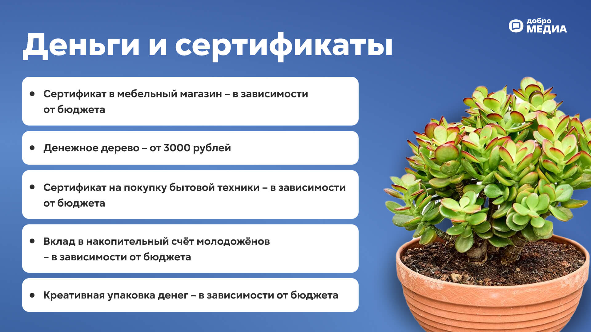 Денежное дерево. Оригинальный способ пожелать паре благополучия. Денежное дерево символизирует рост и стабильность, привлекает изобилие в новую семью.