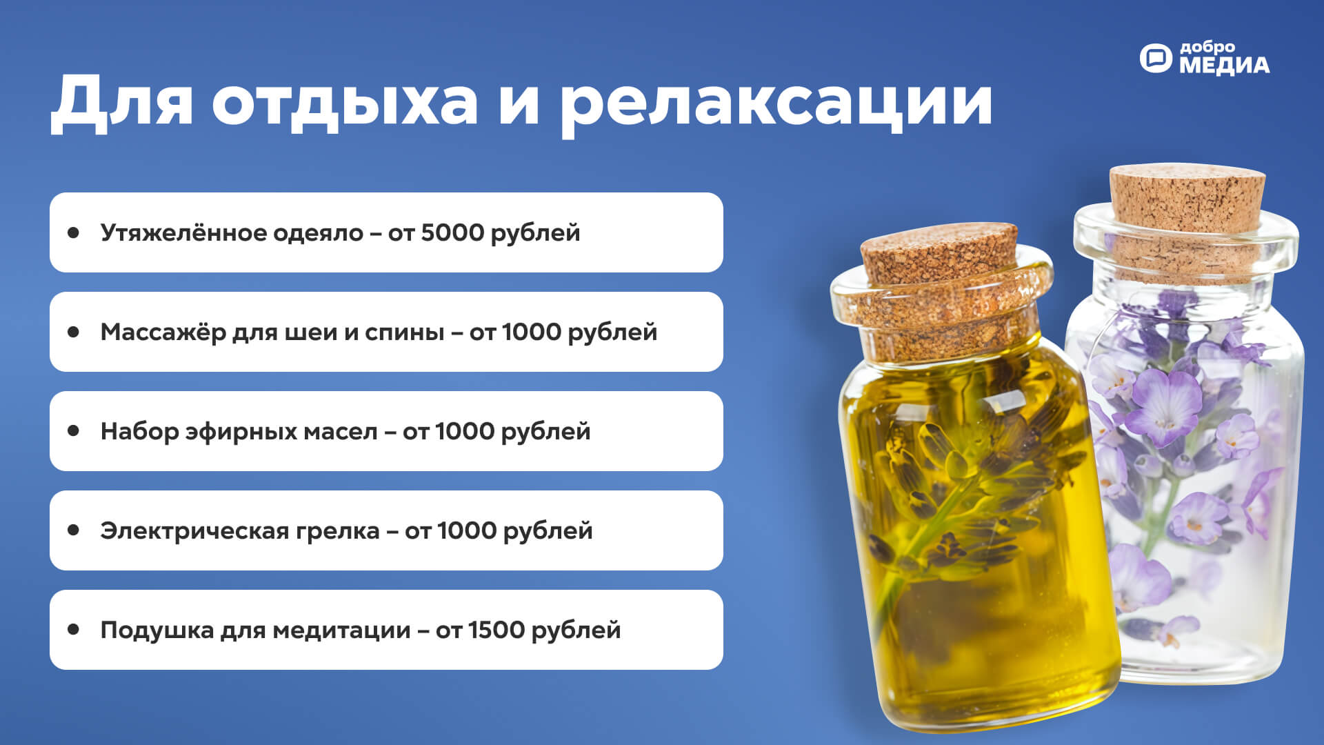 Набор эфирных масел. Создаёт в доме атмосферу спокойствия и уюта и наполняет пространство приятными ароматами. Помогает расслабиться после напряжённого дня.