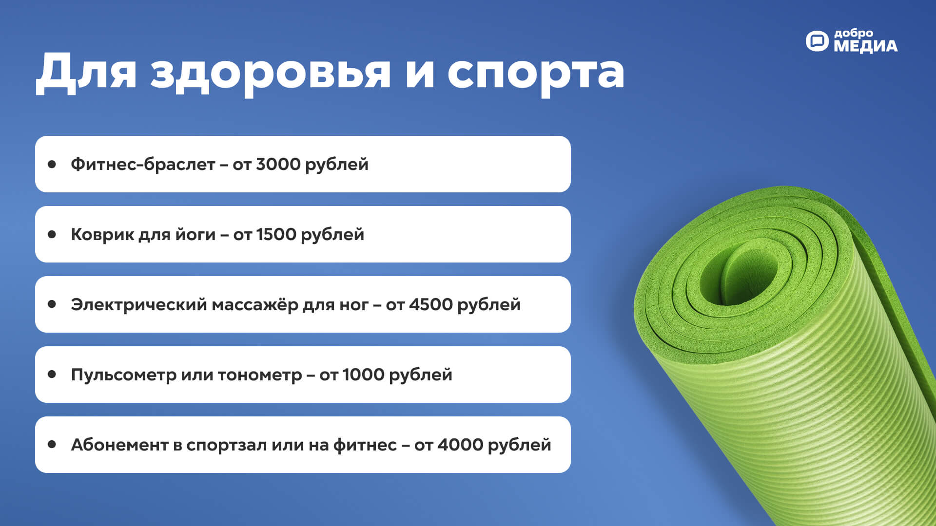 Коврик для йоги. Создаёт комфортные условия для самостоятельных занятий йогой или пилатесом. Помогает поддерживать физическую форму. Ранее мы писали, как начать заниматься спортом дома.
