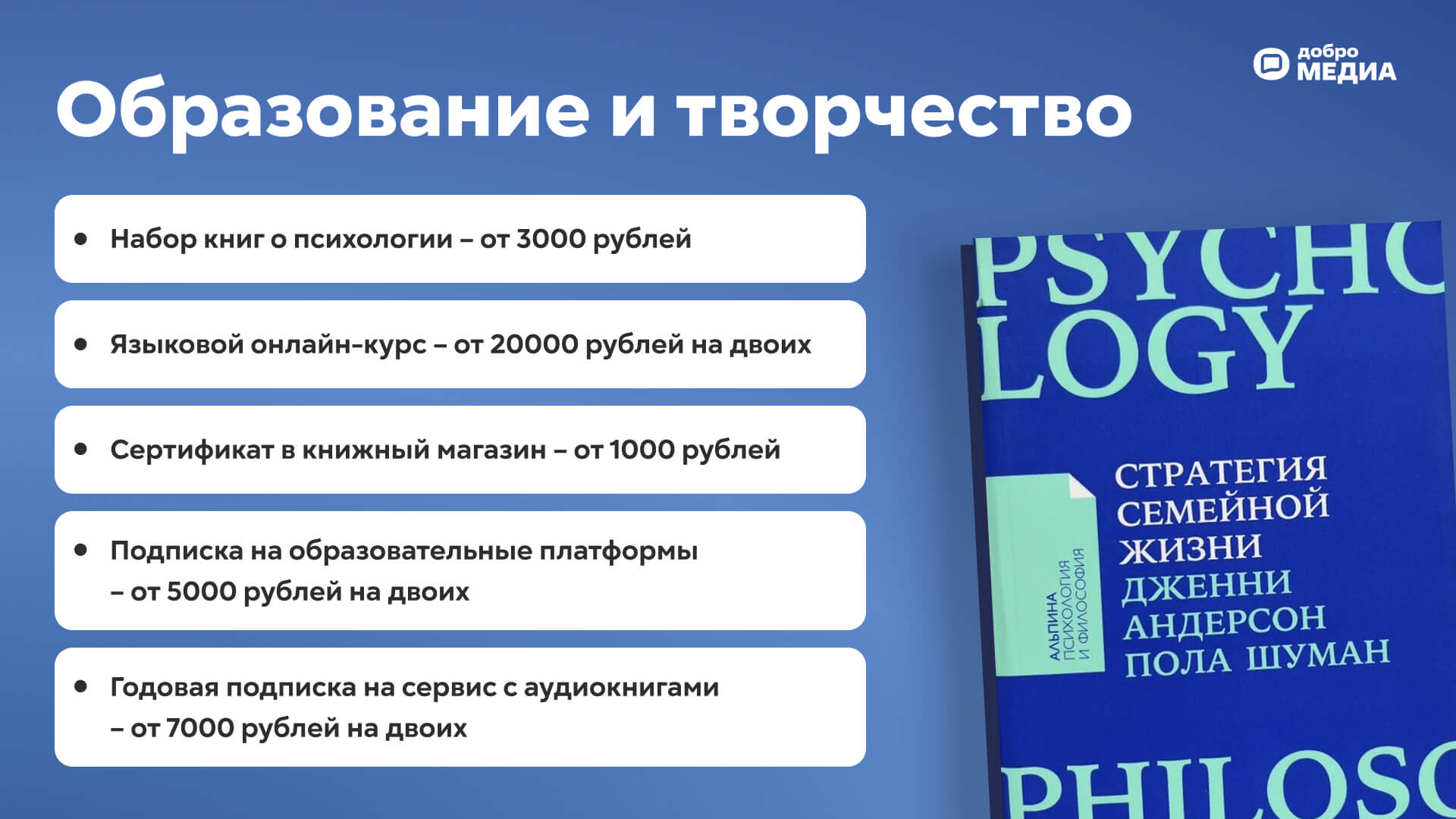 Подписка на образовательные платформы. Сейчас практически всему можно обучиться в интернете. Искусство, технологии, история, финансы – каждый из пары точно найдёт что-то для себя.
