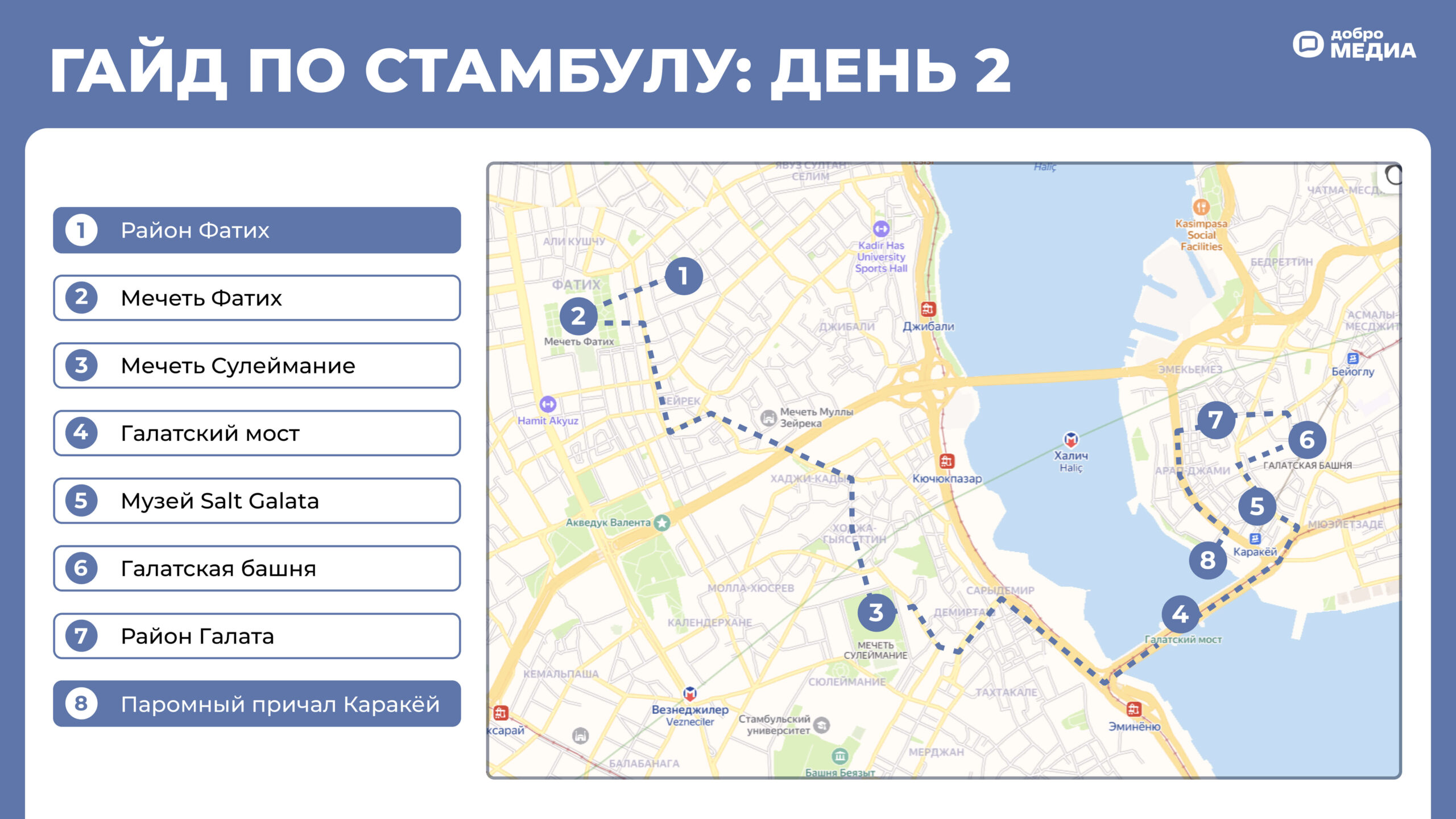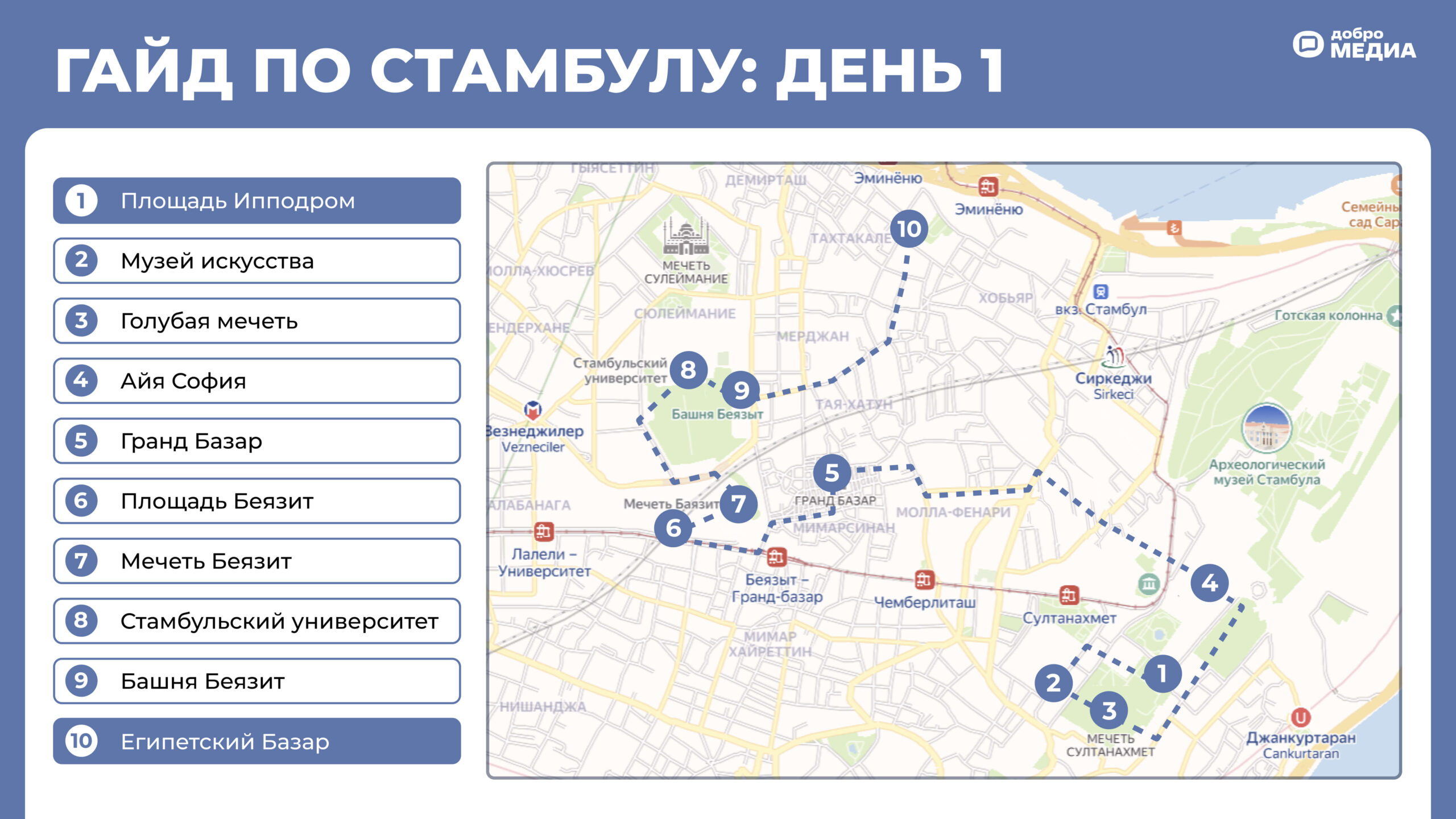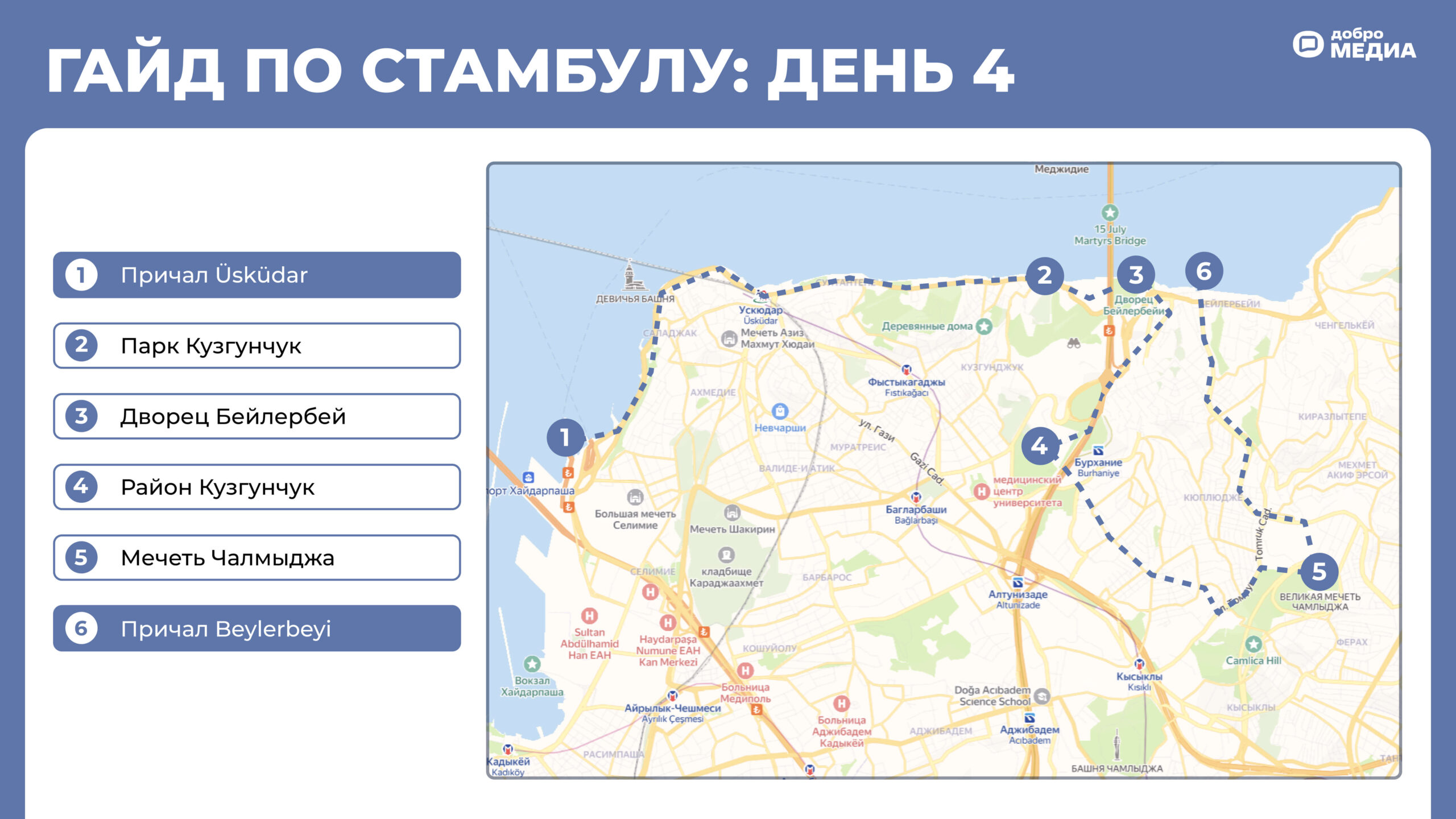 «Моя рекомендация для тех, кто едет в Стамбул – не пожалейте денег и возьмите обзорную экскурсию в первый день, – рассказывает Махмут. – Подготовьте маршруты заранее. Город огромный, можно ходить по кругу и в итоге ничего не увидеть. С собой обязательно удобную обувь. Будьте готовы много передвигаться пешком, вкусно кушать и не переставать удивляться красоте вокруг».