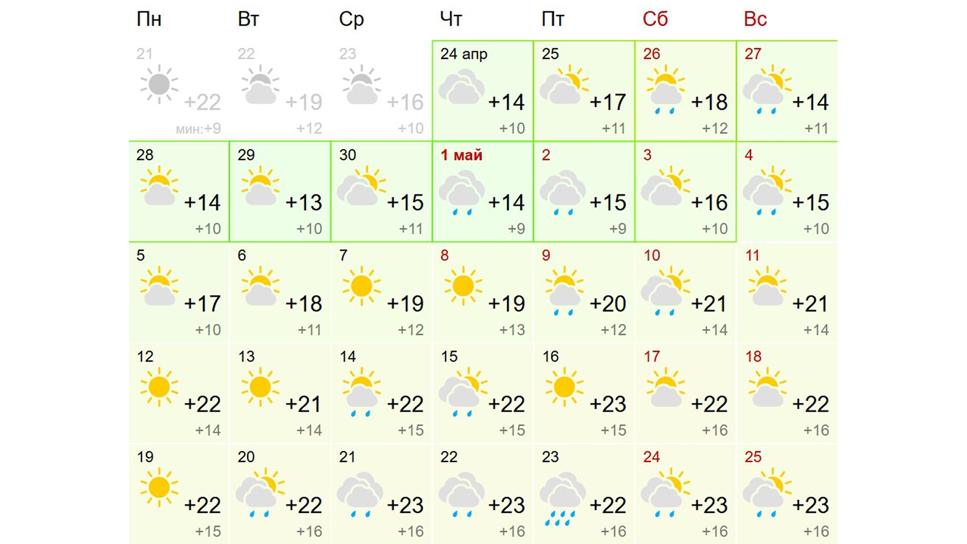 Средняя температура в Стамбуле с 25 апреля по 25 мая будет плюс 19 градусов. Столбик термометра в течение дня ни разу не опустится ниже отметки 14. Синоптики обещают солнце, низкую облачность и несколько дождливых дней.