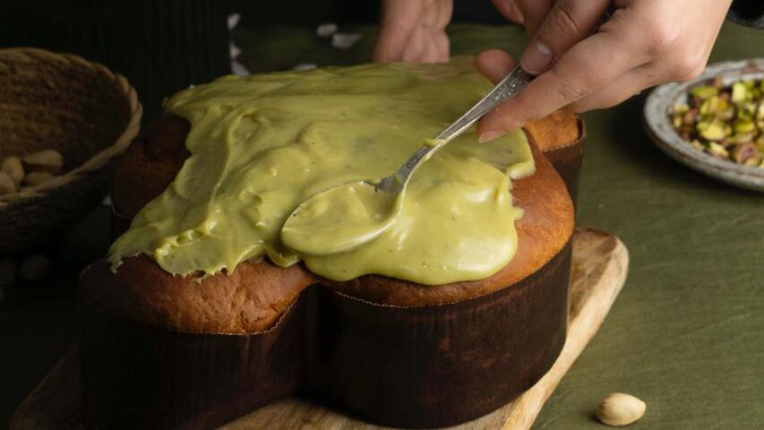 Чтобы украсить дубайский кулич, используйте смесь фисташковой пасты с белым шоколадом. Фото: Freepik