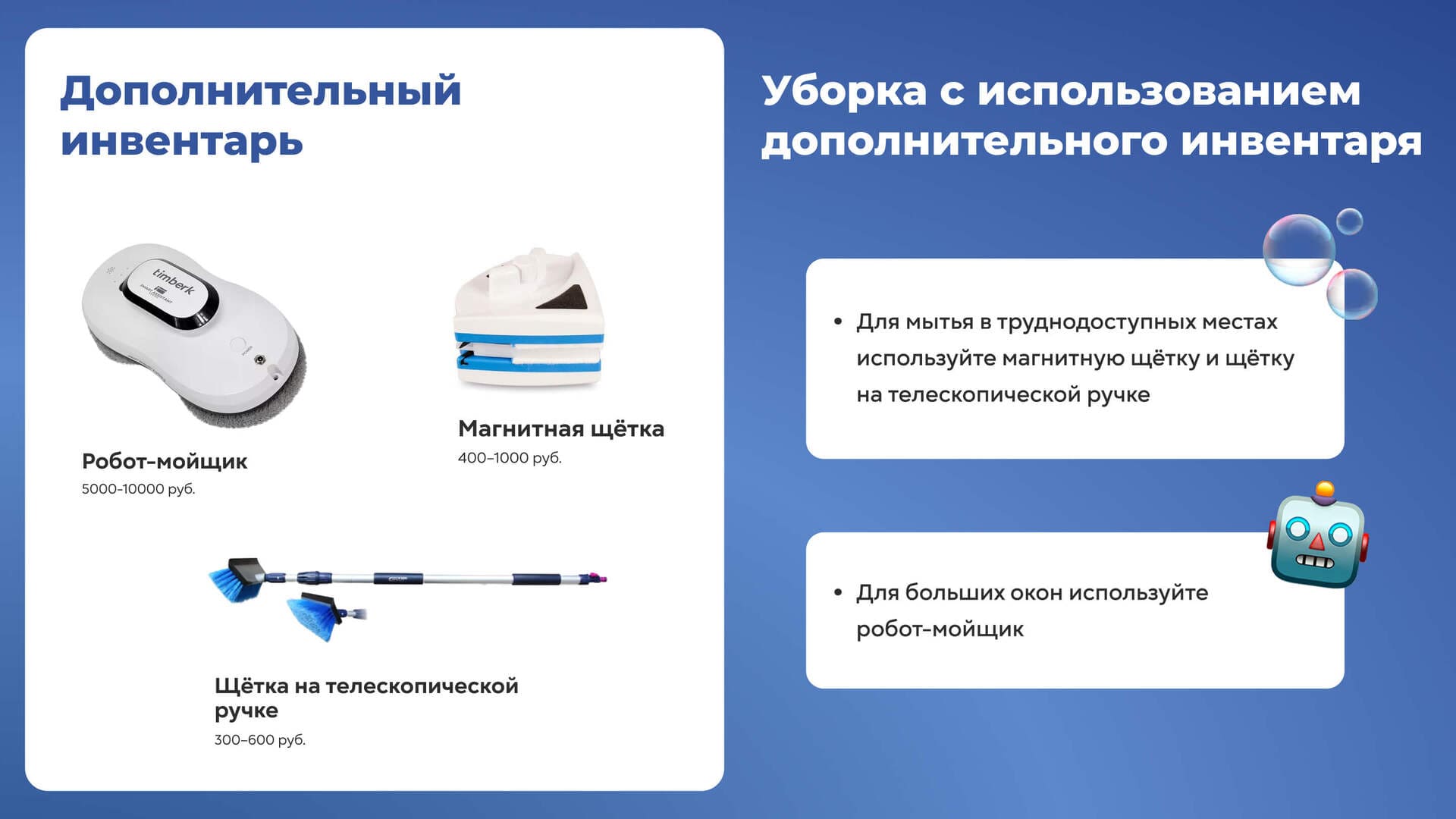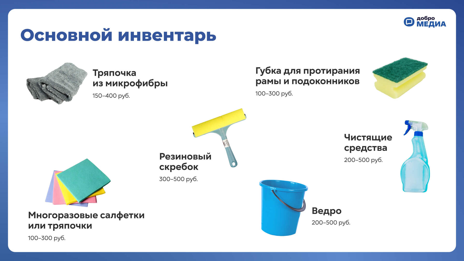 Сколько стоит базовый и дополнительный инвентарь для мытья окон?