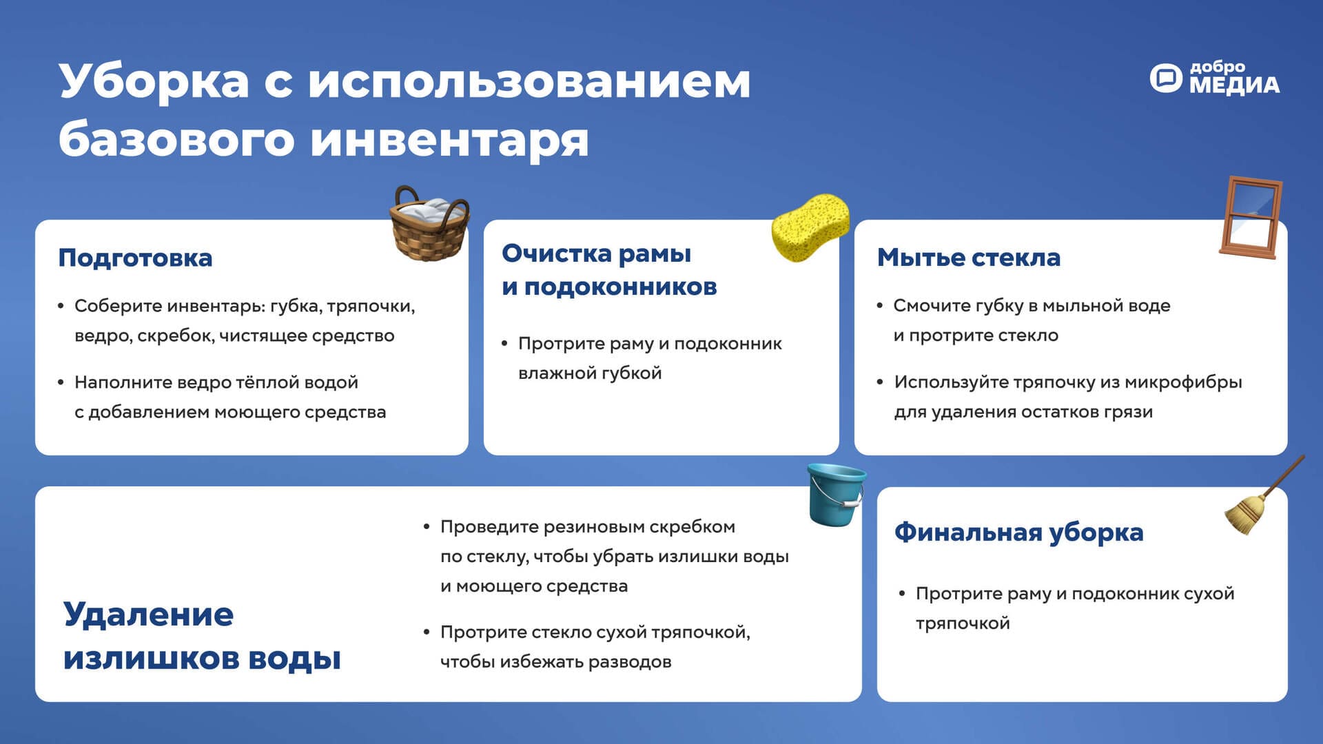 Как мыть окна без разводов? В материале Добро.Медиа рассказали, какой инвентарь понадобится и сколько он стоит. Сохраните пошаговую инструкцию, чтобы она всегда была под рукой.