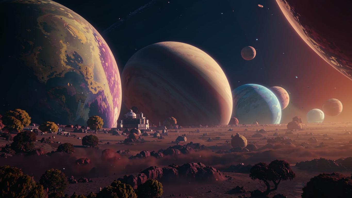 Парад планет можно будет наблюдать за час до восхода Солнца. Изображение сгенерировано нейросетью