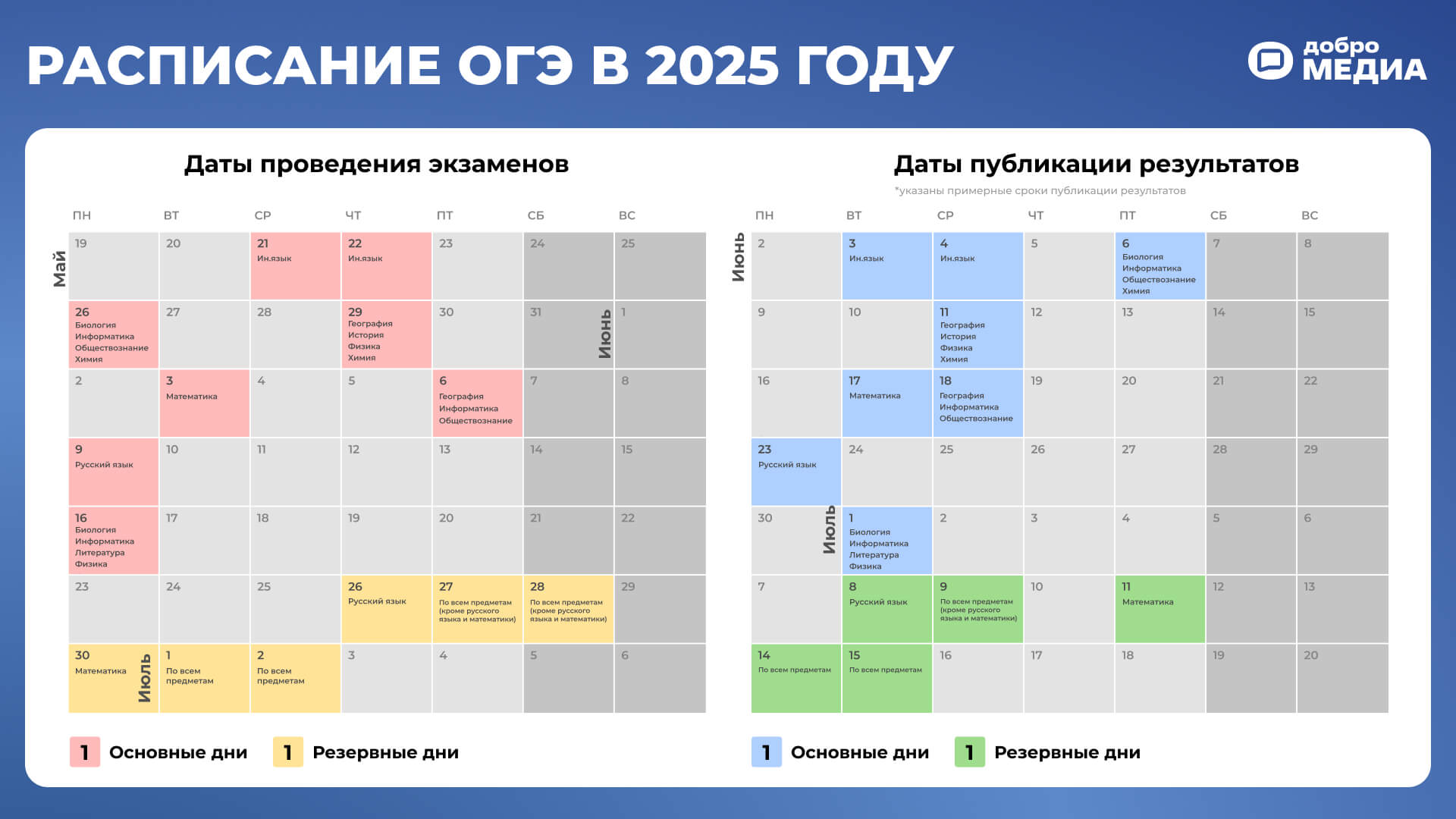 В 2025 году девятиклассники сдают государственные экзамены 21 мая до 16 июня. Резервный период продлится с 26 июня по 2 июля.