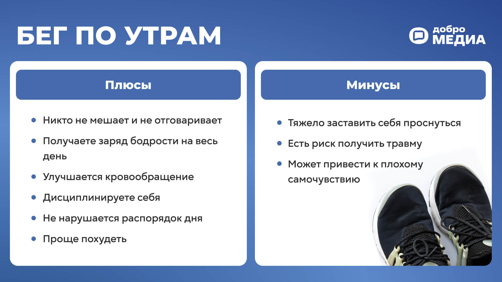 Плюсы и минусы бега по утрам. Графика: Добро.Медиа