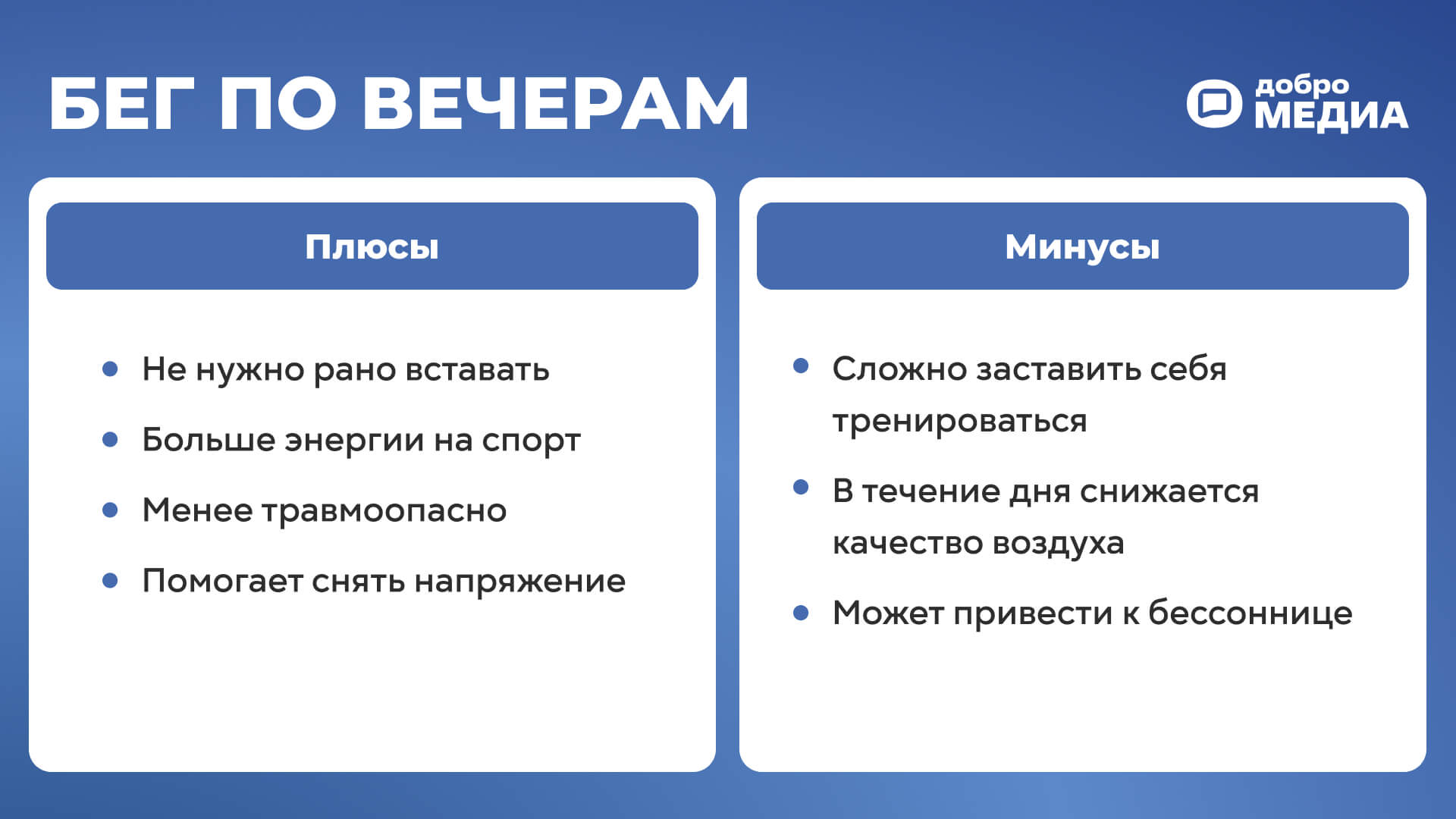 Плюсы и минусы бега по вечерам. Графика: Добро.Медиа
