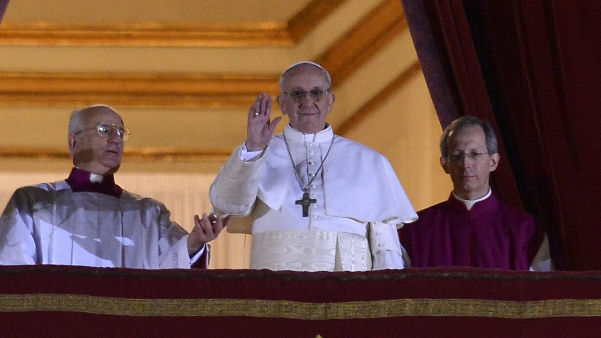 Хорхе Марио Бергольо впервые приветствует людей как папа Франциск. Ватикан, 13 марта 2013. Фото: Alberto Lingria / Xinhua / www.globallookpress.com