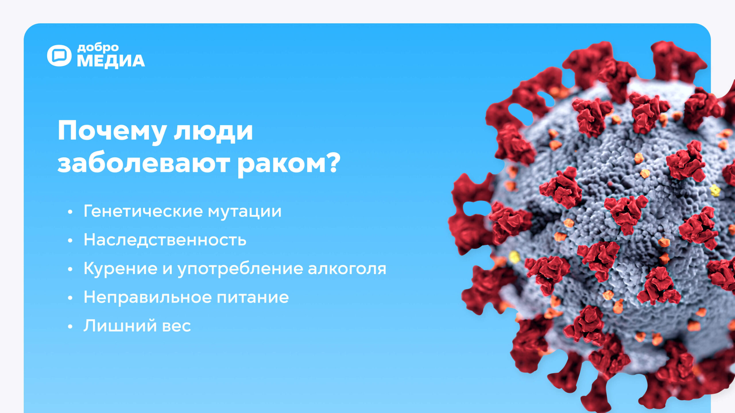 Неправильный образ жизни – далеко не единственная причина, почему возникает рак. Помимо этого, некоторую роль играет генетическая предрасположенность. А ещё мутации наших клеток, которые могут накапливаться на протяжении всей жизни.