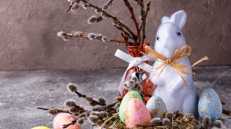 Пасхальная композиция с кроликами и яйцами. Фото: freepik