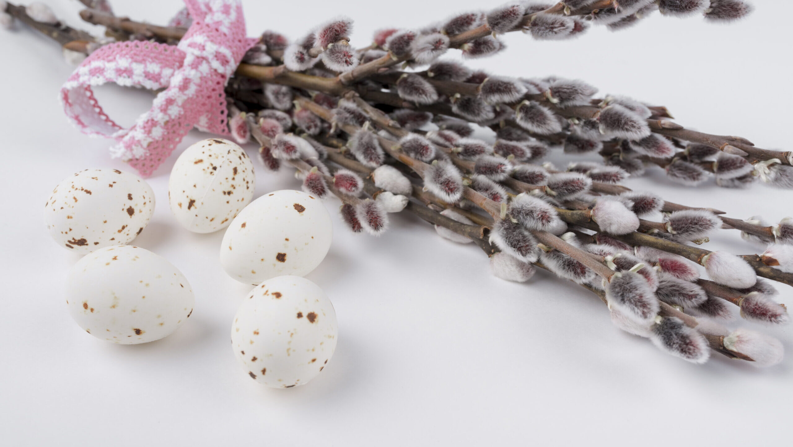 Верба, украшенная лентой и пасхальными яйцами. Фото: freepik