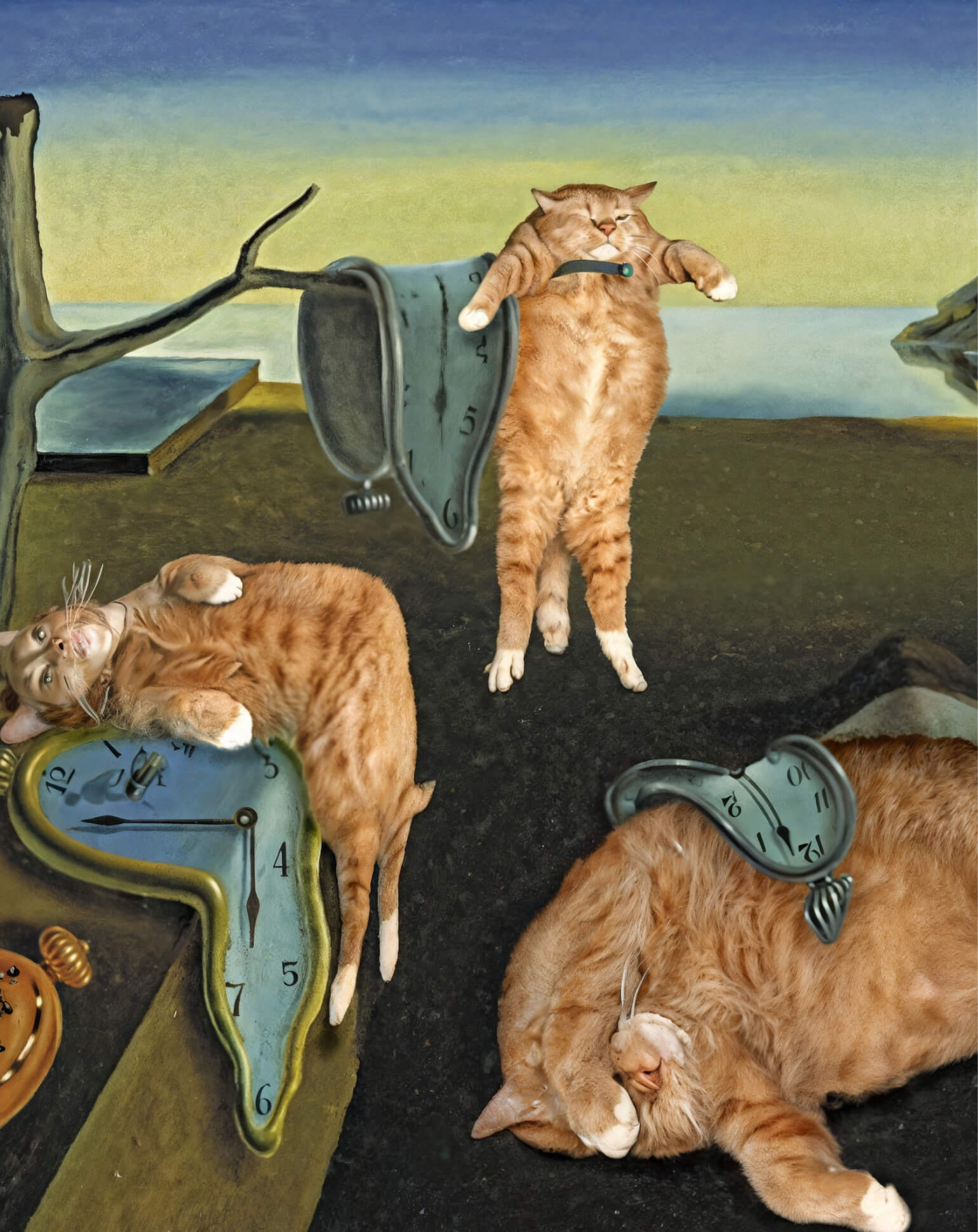 Идея полотна родилась в процессе написания. Причём случайно. Дали рассказывал, что в 1931-м работал над каталонским пейзажем с сухим деревом – и тут увидел тающий на солнце сыр камамбер. В форме лакомых кусочков гений изобразил циферблаты часов.