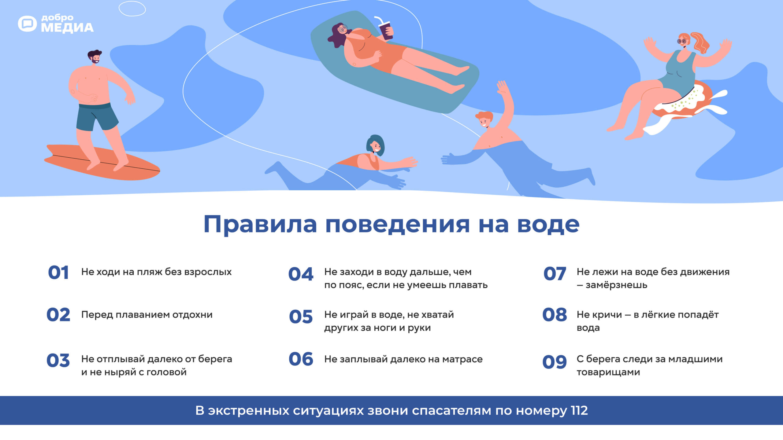 Если у вас есть ребёнок, не игнорируйте правила поведения на воде. Они могут спасти жизнь вашим детям. Подробно объясните им каждый пункт и распечатайте памятку.