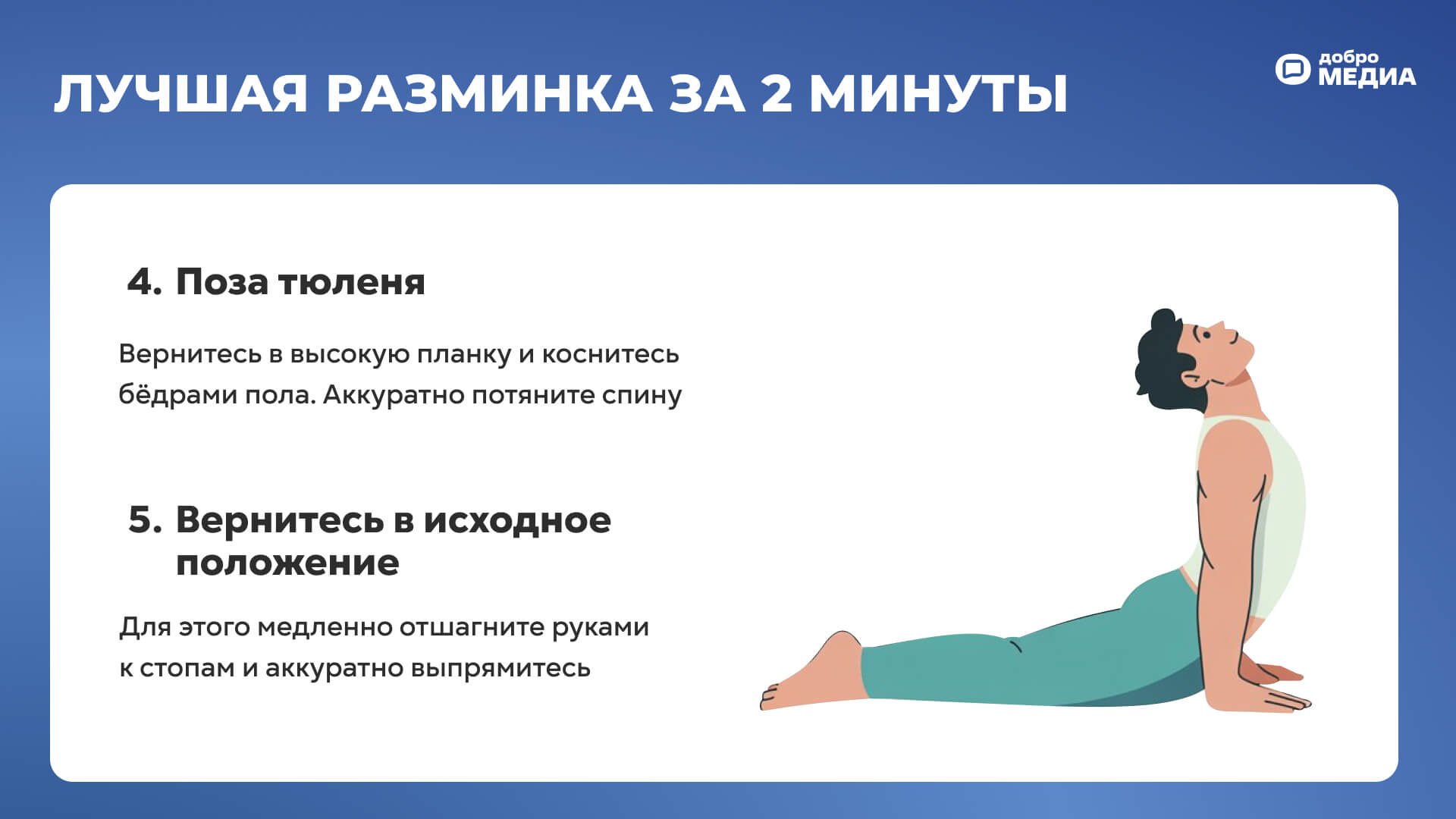 Из позы тюленя вернитесь в исходное положение. Графика: Добро.Медиа