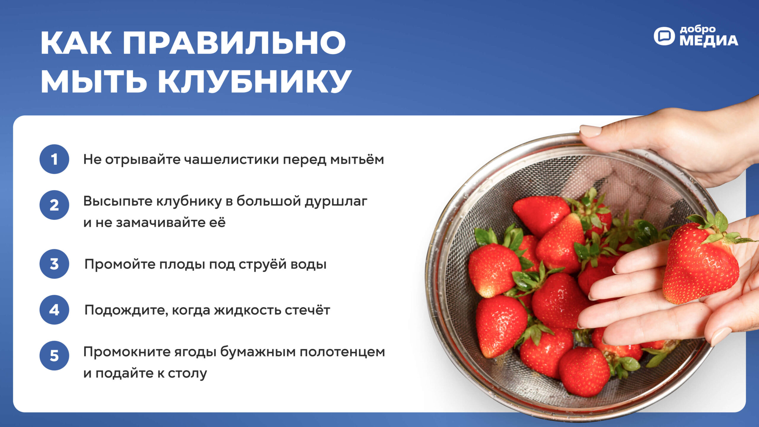 Как правильно мыть клубнику. Графика: Добро.Медиа