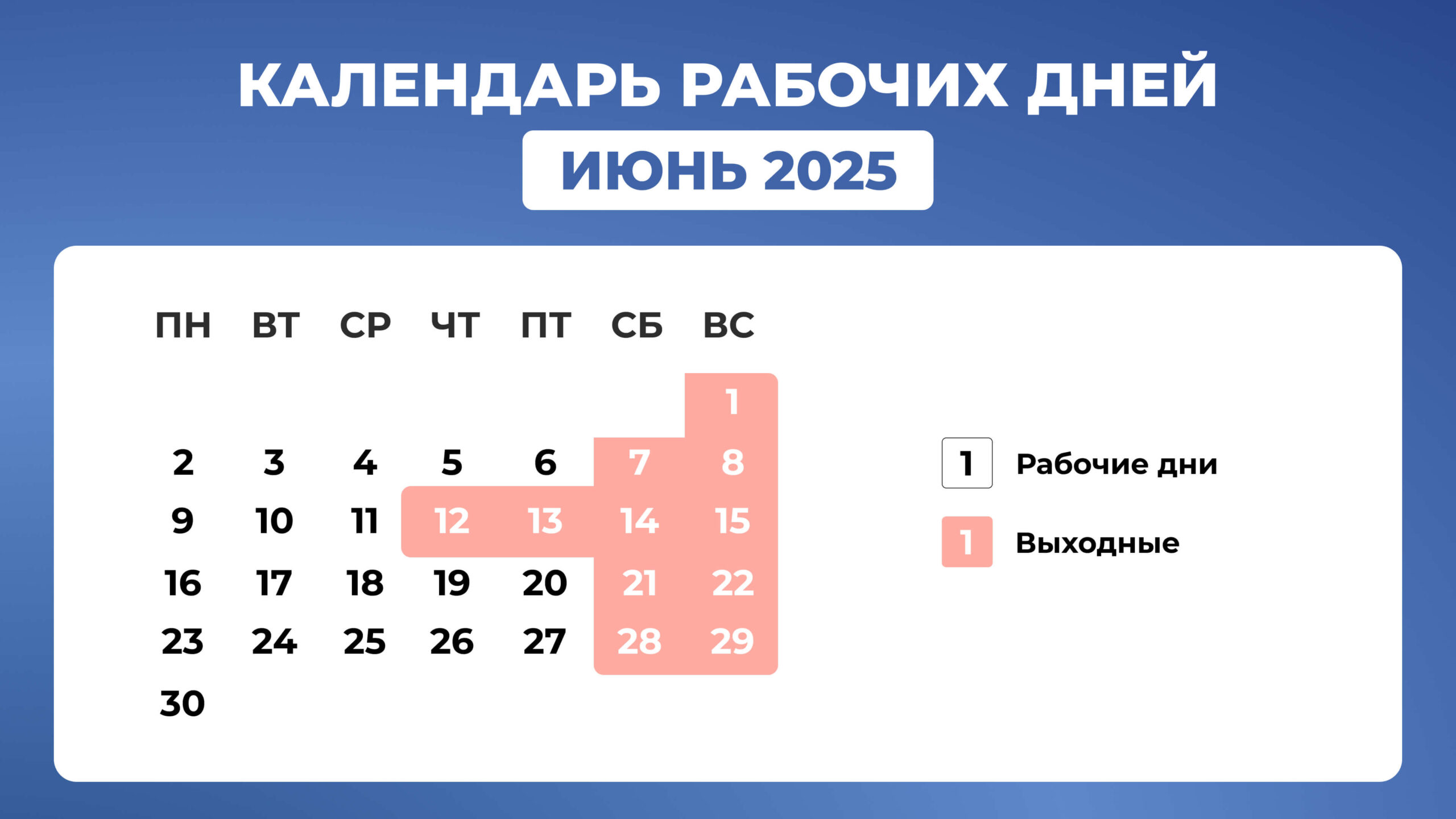 Производственный календарь на июнь 2025 года. Графика: Добро.Медиа
