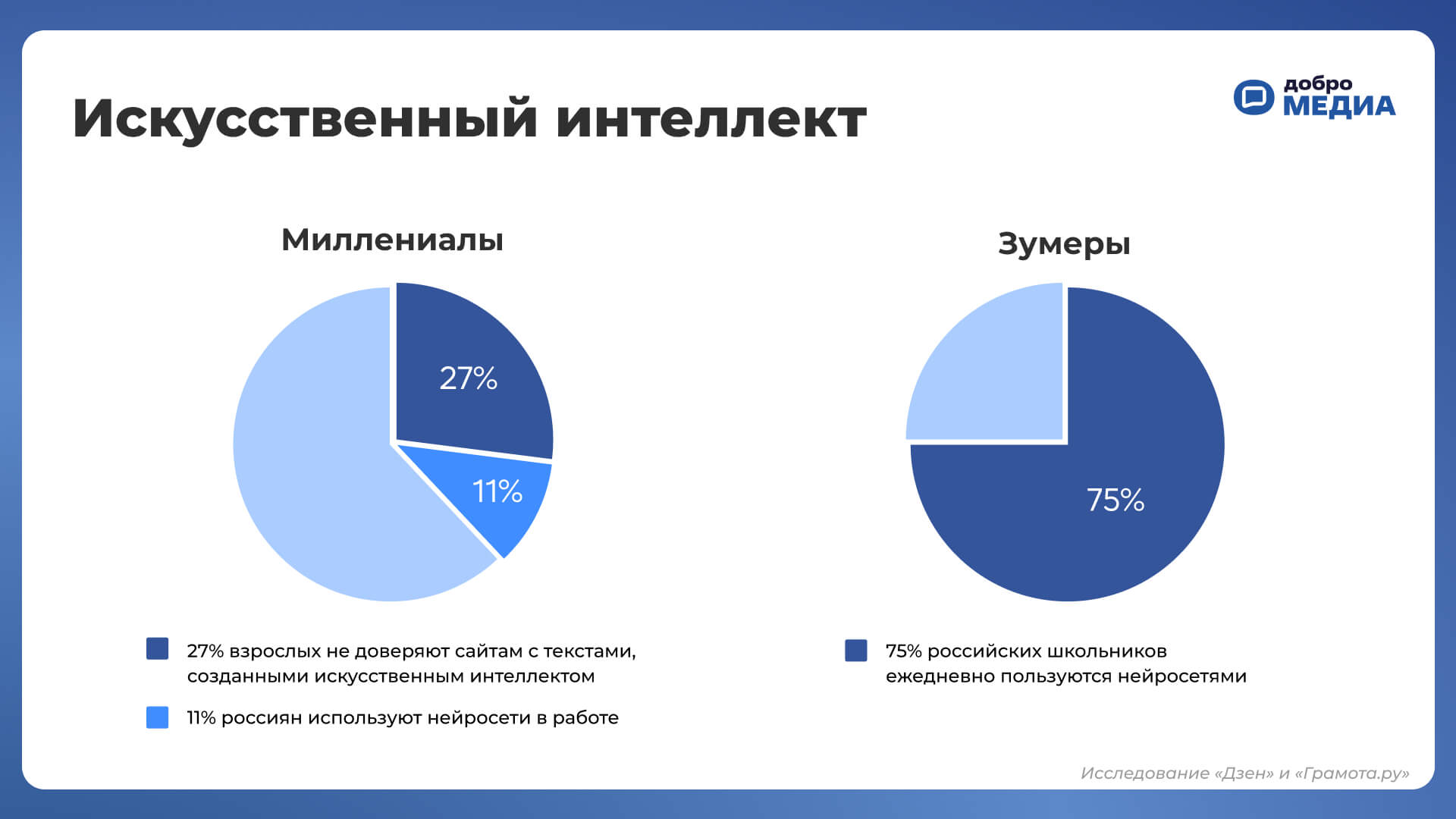 Многие обращаются за помощью к искусственному интеллекту и просят написать привлекательные тексты для сайтов и объявлений. Только треть россиян сразу закрывает интернет-ресурс, если находит следы нейросетей.