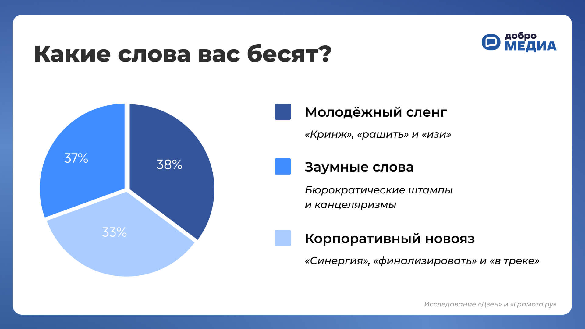 Какие слова раздражают россиян. Данные: Исследование «Дзен» и «Грамота.ру». Графика: редакция Добро.Медиа