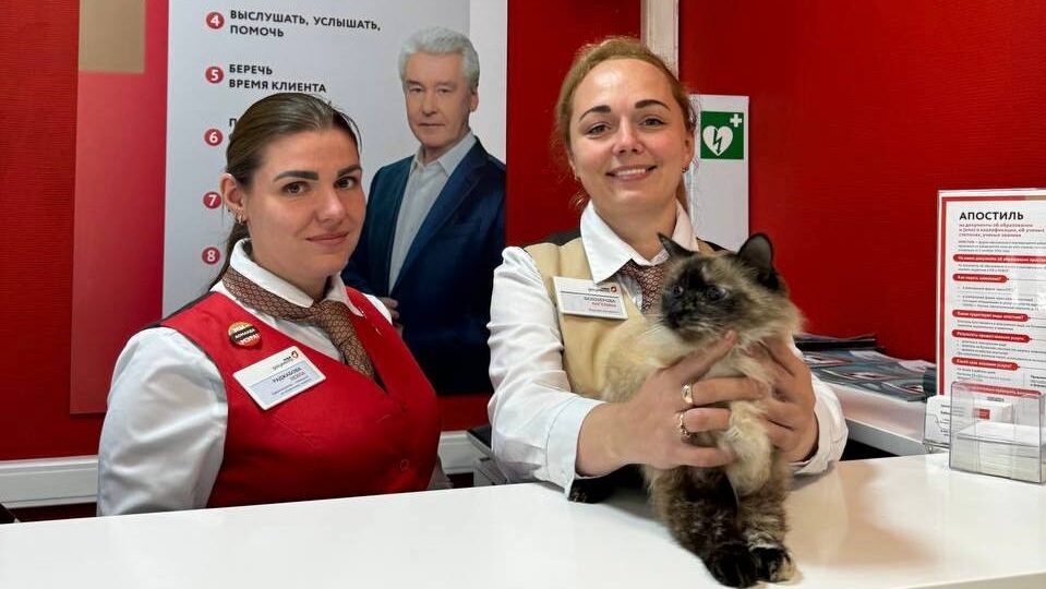 В центре Госуслуг Бабушкинского района Москвы появился милый временный сотрудник – кот, которого спасли.