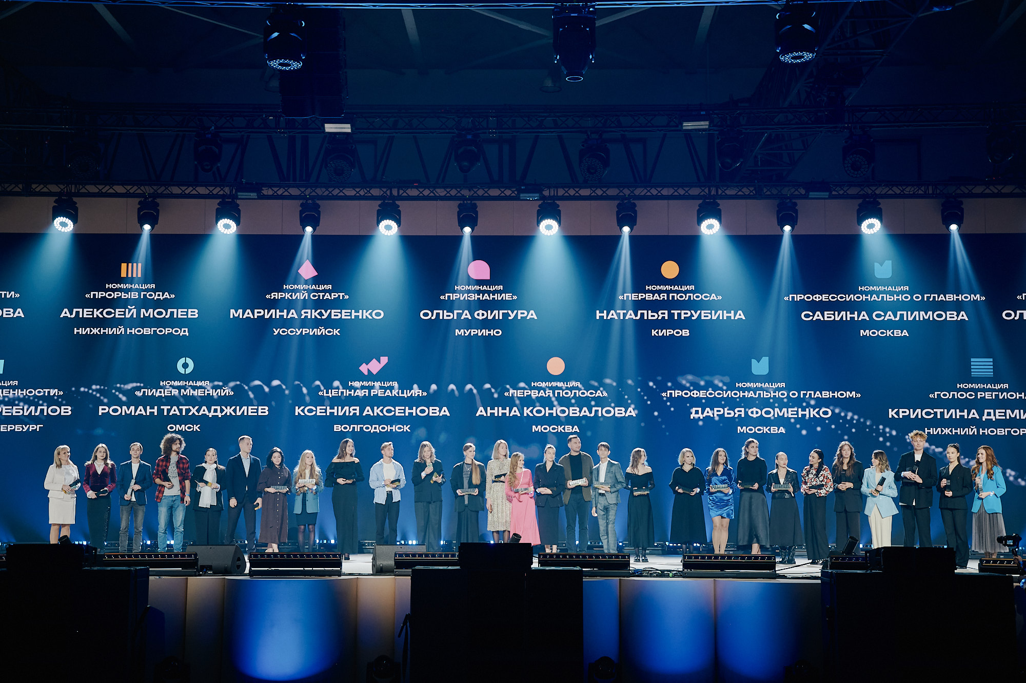 Победители Всероссийской молодёжной премии в сфере медиа и журналистики «ШУМ» в 2024 году. Фото: Центр «ШУМ»