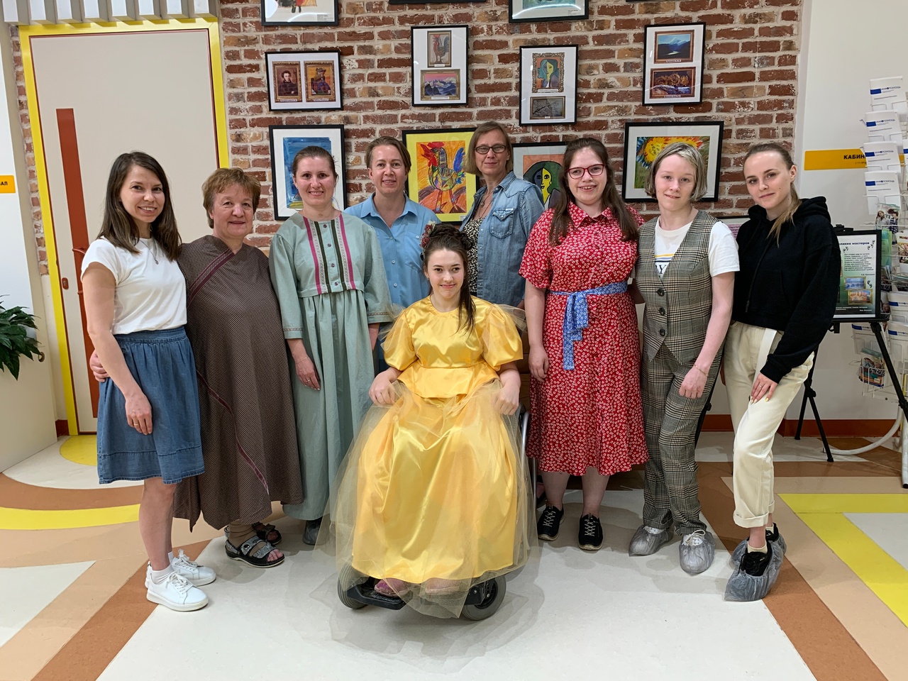 «Была у нас одна творческая девушка Марина. Она колясочница, но часто выступала на сцене, – улыбается Полина Солодова. – Ей очень сложно переодеваться из обычной одежды в нарядные платья, и она просила придумать способ упростить этот процесс. Мы сделали для неё платье-фартук, которое застёгивается на липучки».