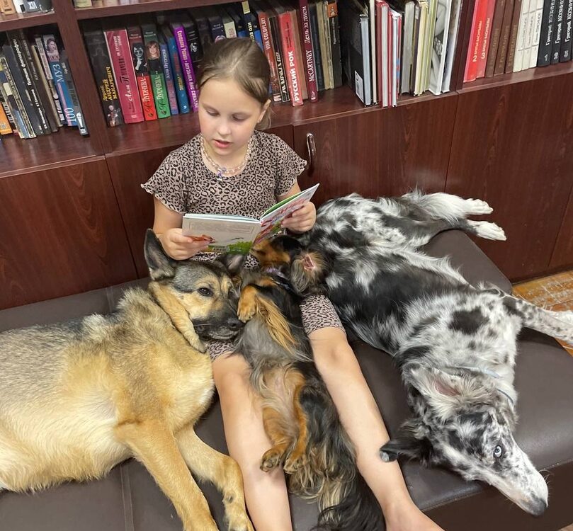 В городе было очень мало канистерапевтов, и женщина решила, что такие собаки могут помочь самым непоседливым детям научиться читать. Её идею поддержали в библиотеке имени Владимира Маяковского. Так появился проект «Дети читают собакам».